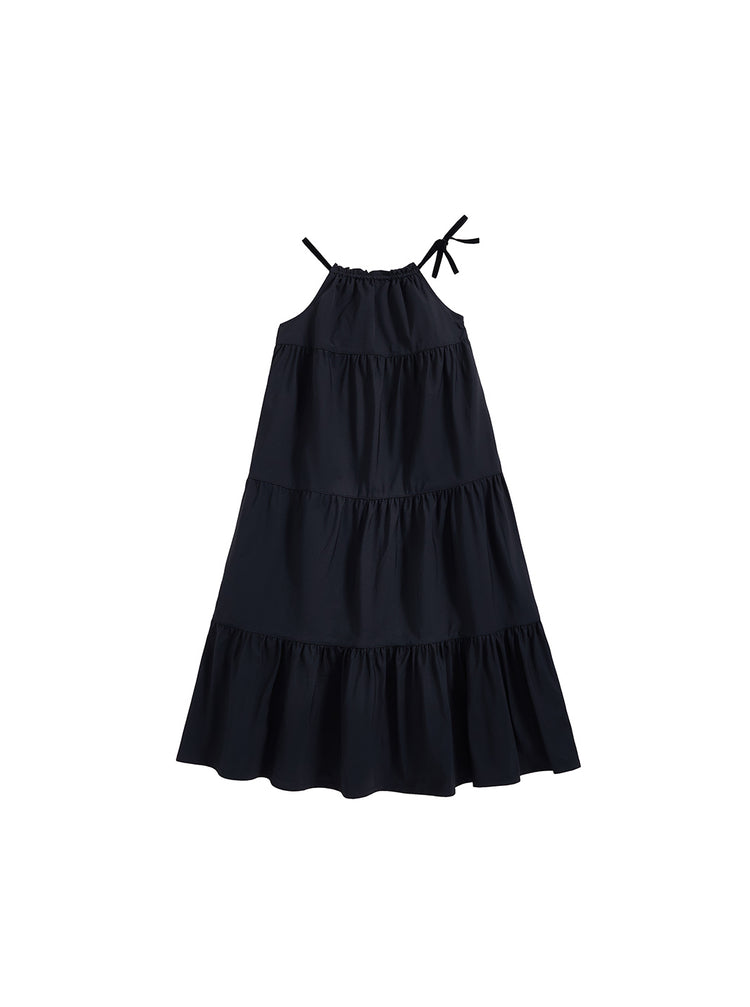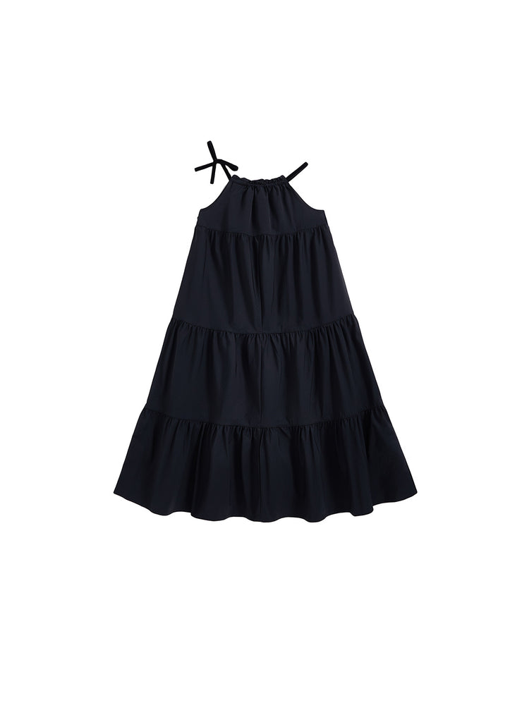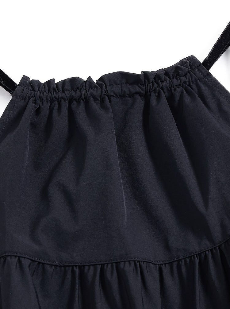 1 Pc. Taffeta Trim Midi-Length Jumper - Black