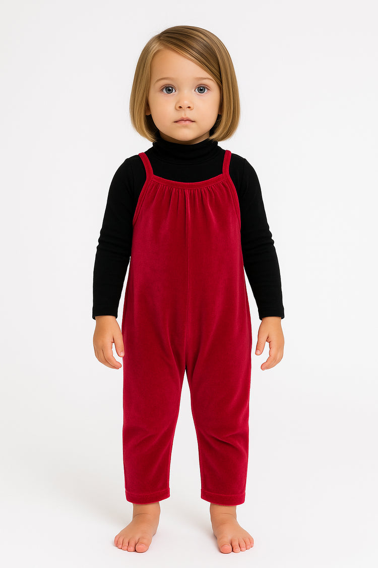 1 Pc. Baby Cotton Velour Strap Overall - Strawberry