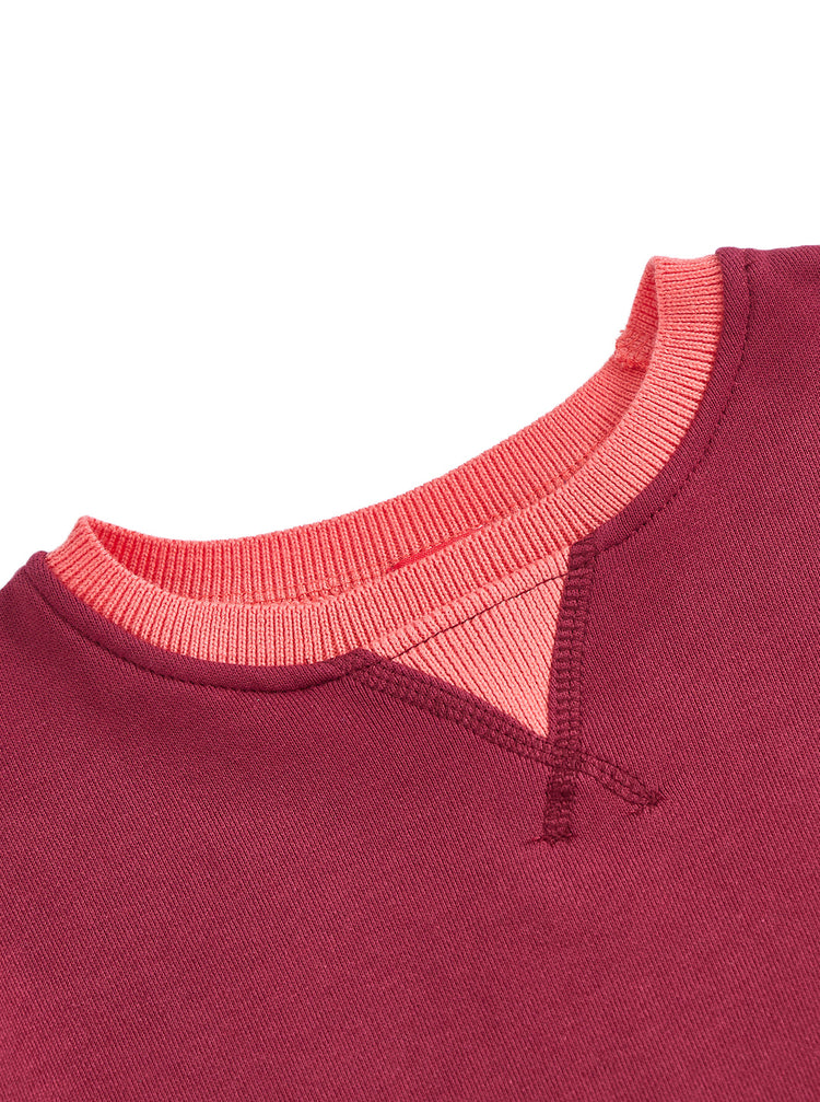 1 Pc. Contrast Trim Top - Burgundy/Orange