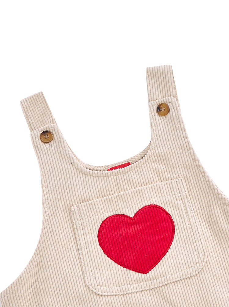 1 Pc. Corduroy Heart Pocket Jumper - Off White