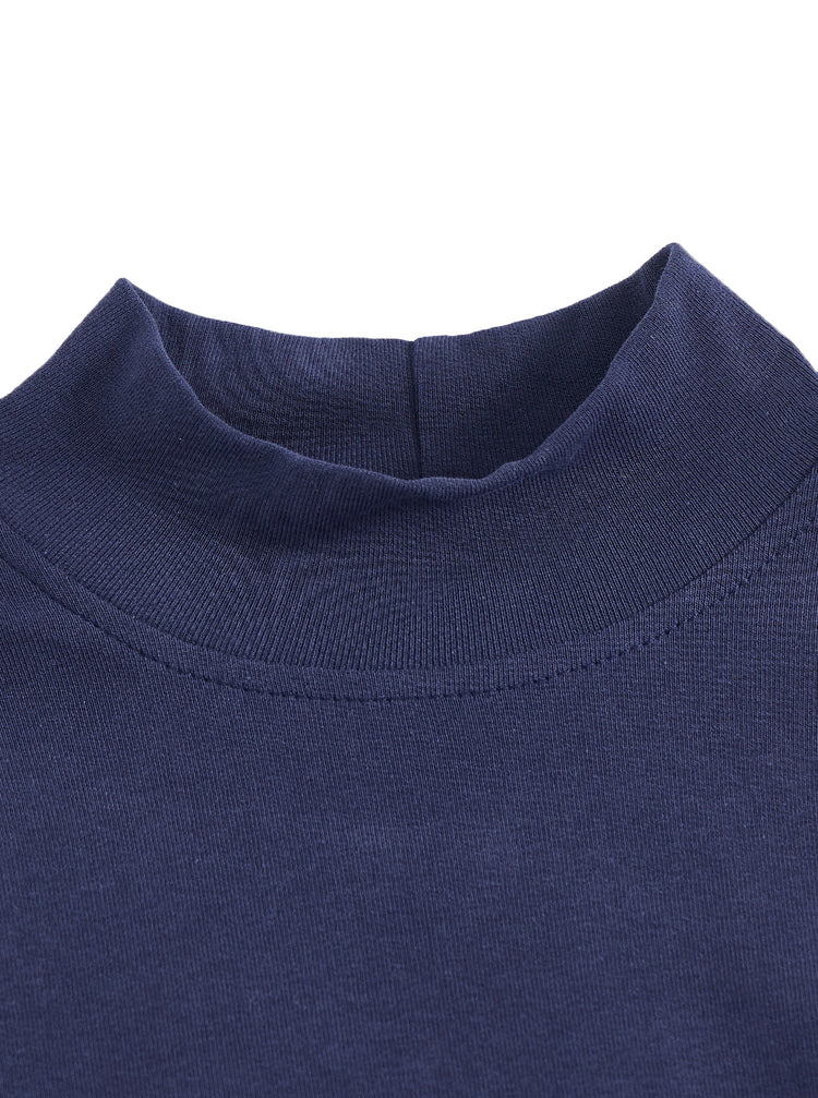 1 Pc. Plaid Mock Neck Dress - Navy Blue