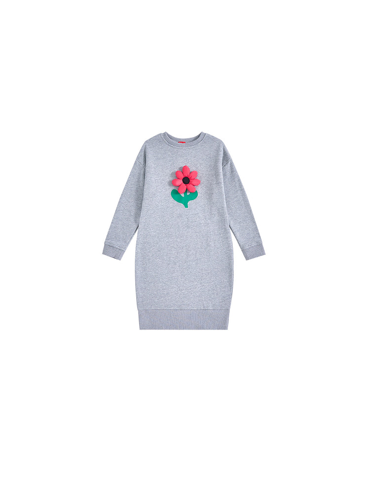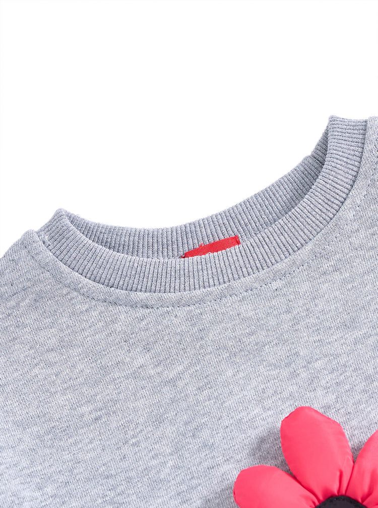 1 Pc. Puff Flower Dress - Grey