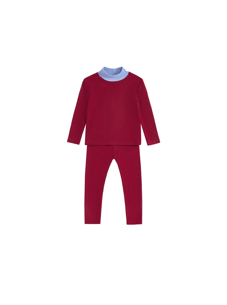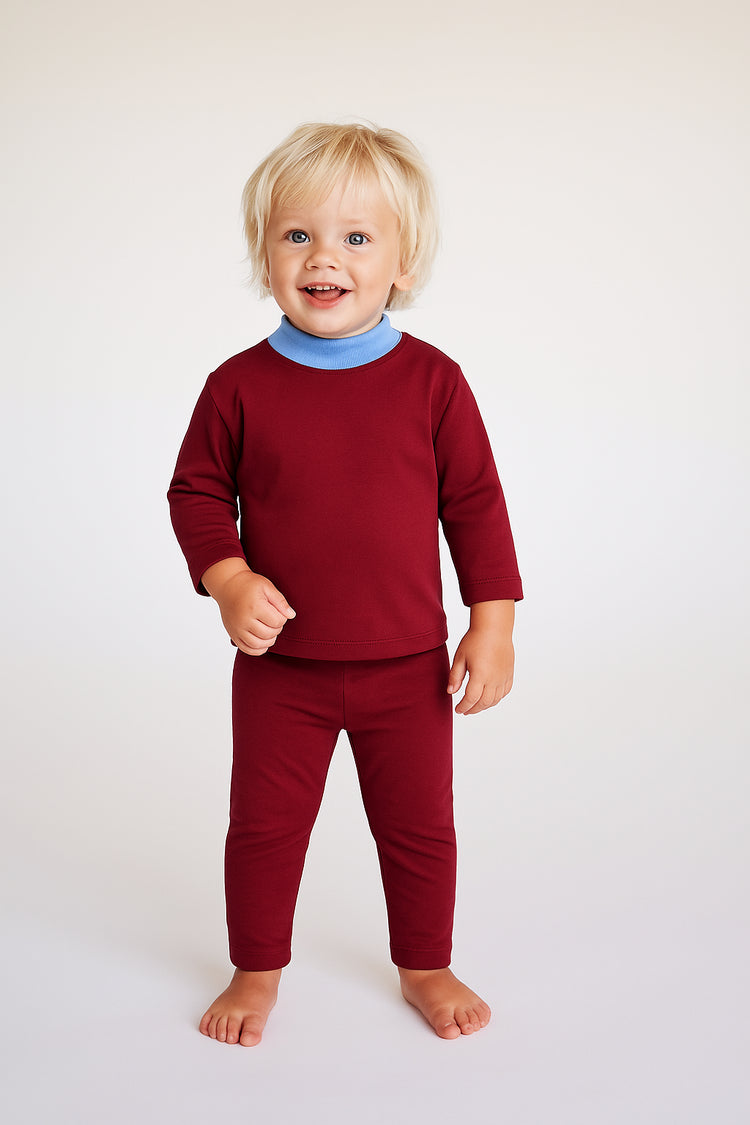 2 pc. Baby Contrast Mock Neck Set - Burgundy/Blue