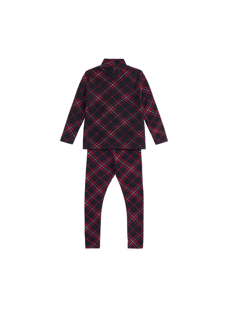 Baby Plaid Mock Neck Set - Burgundy
