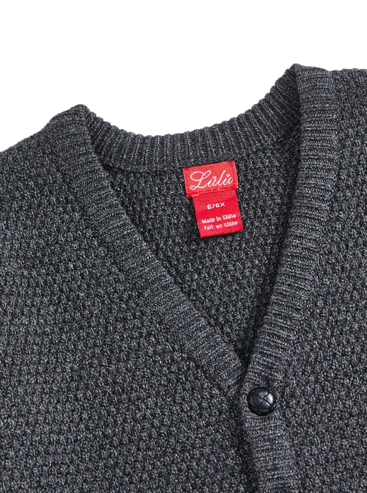 1 Pc. Basket Weave Cardigan - Black Charcoal Mélange