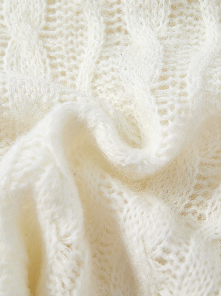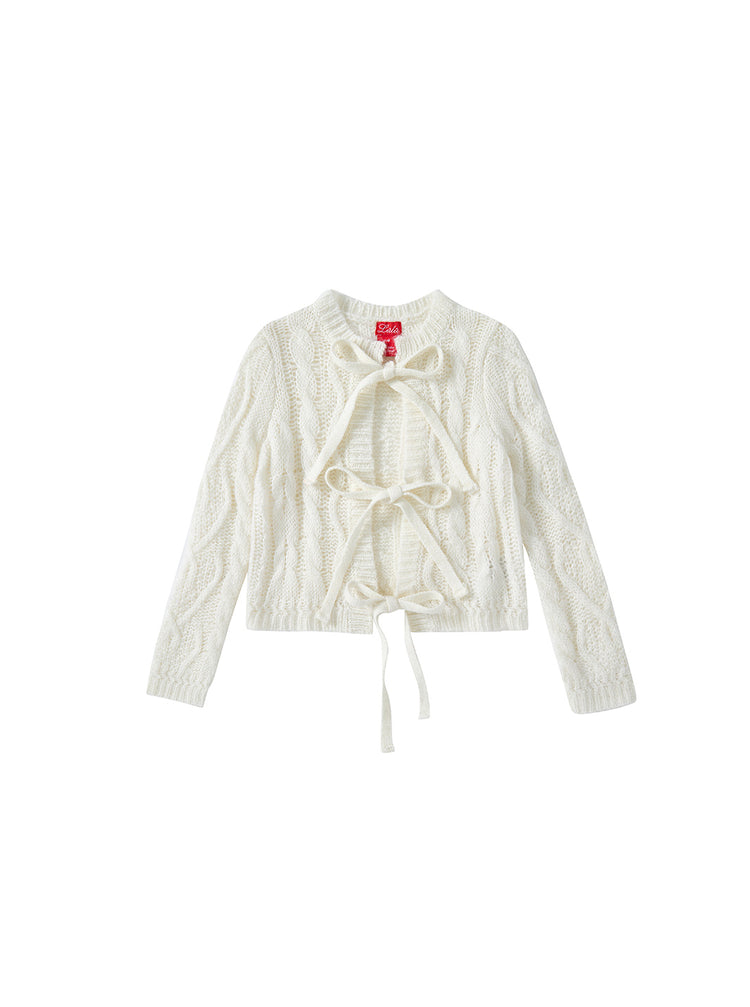 Cable Knit Bow Sweater - Off White