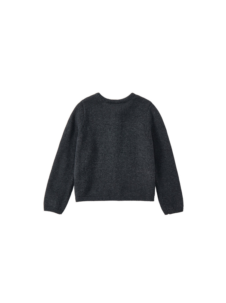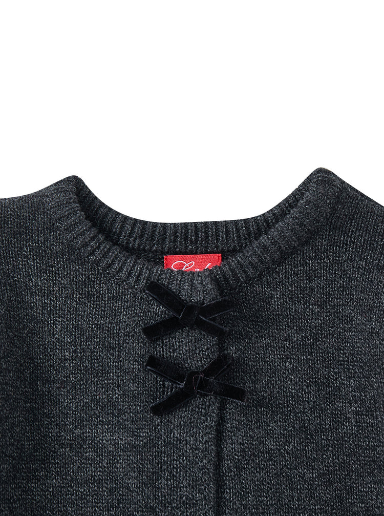 1 Pc. Cardigan Trim Bows Sweater - Charcoal Mélange