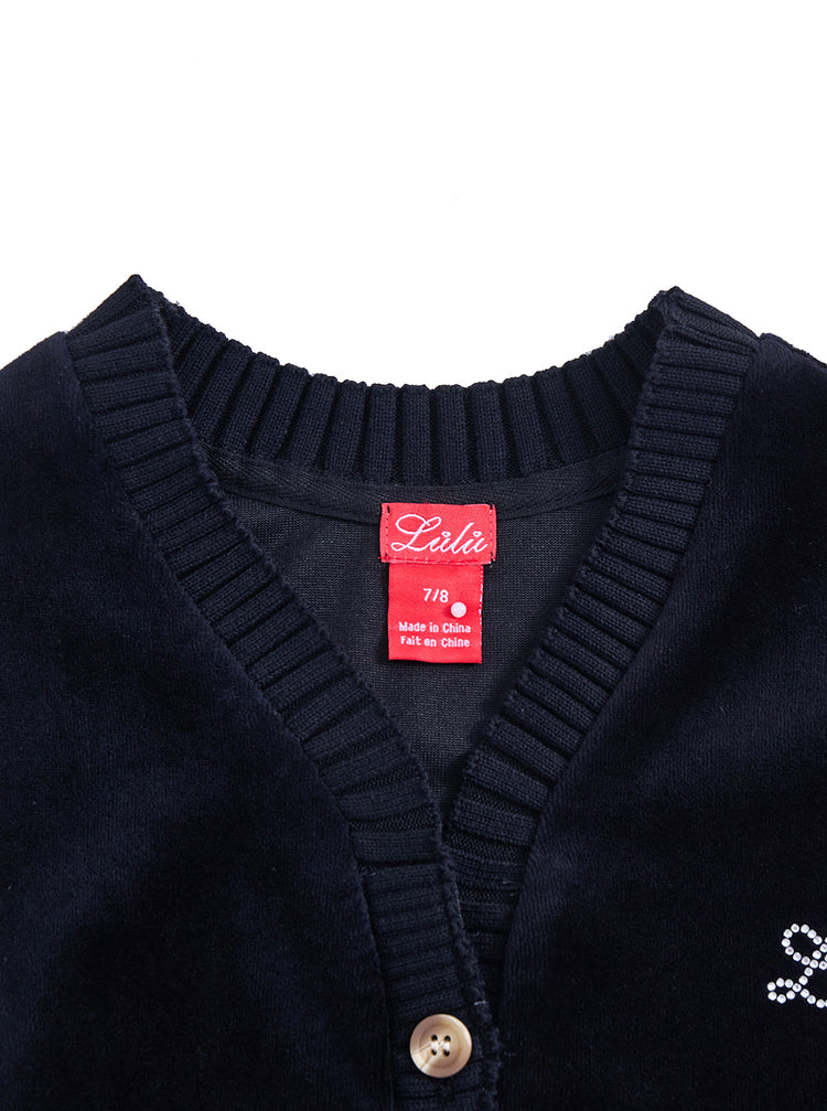1 Pc. Cardigan Velour Crop Top - Black