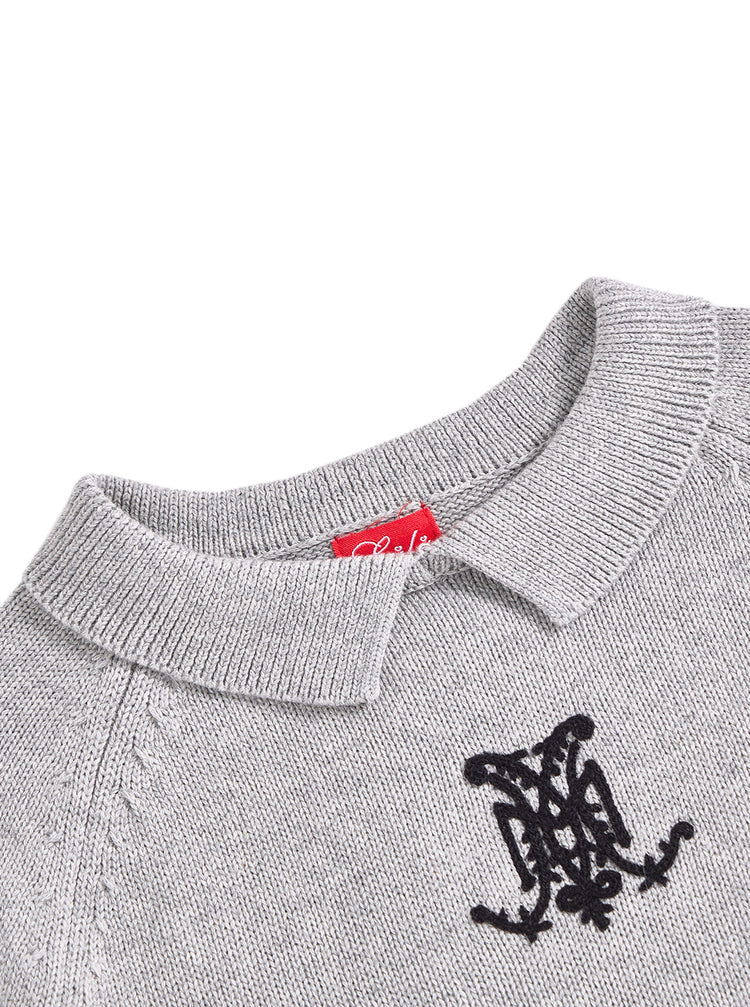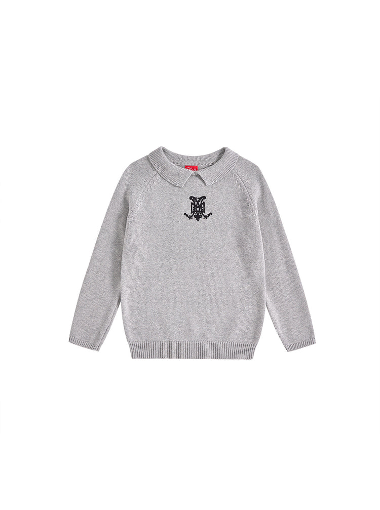 1 Pc. Collar Emblem Sweater - Silver Grey Mix