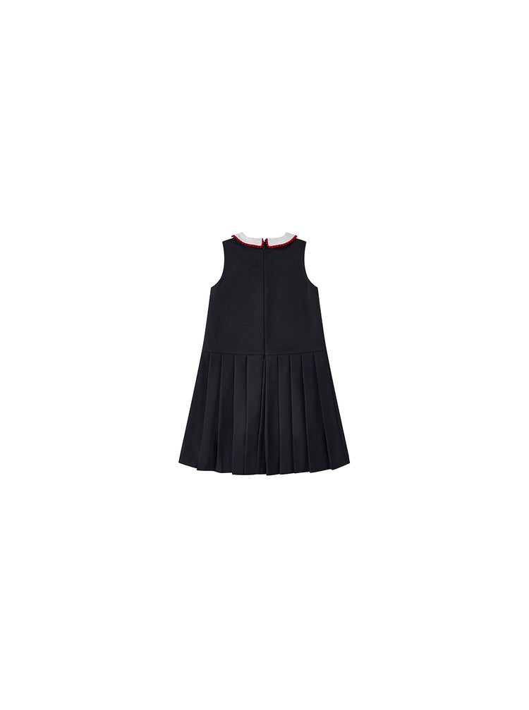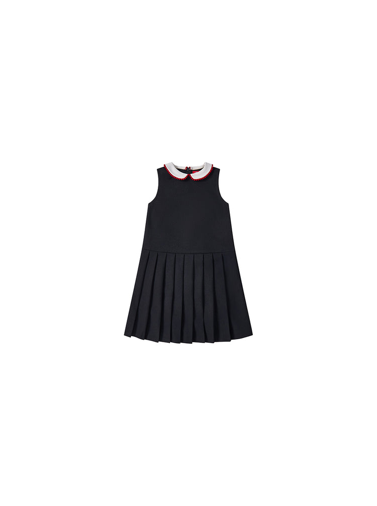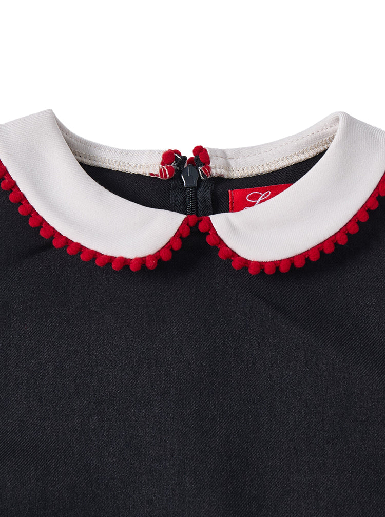 1 Pc. Collar Trim Bottom Pleats Jumper - Black