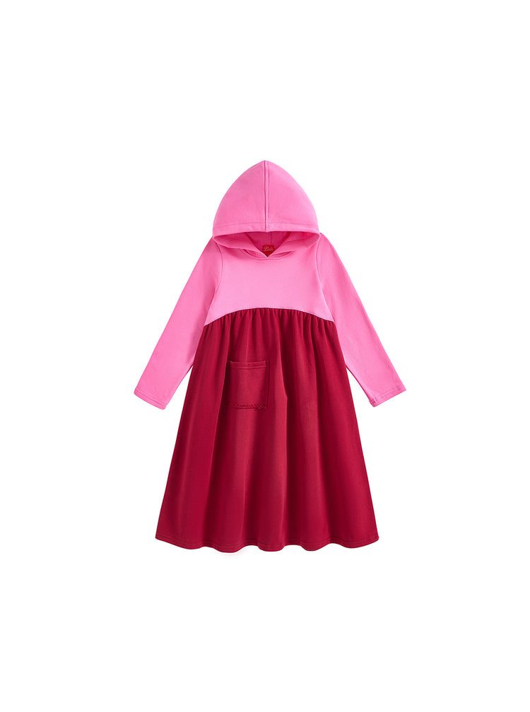 1 Pc. Hooded Combo Dress - Hot Pink/Maroon
