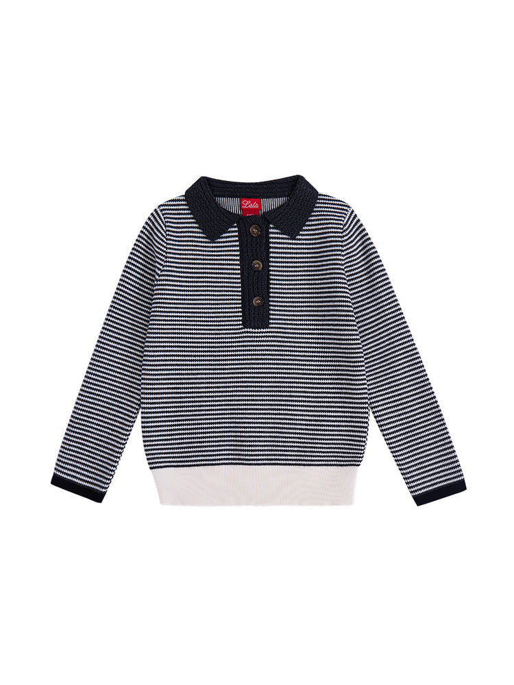 1 Pc. Collar Striped Sweater- Charcoal Mélange