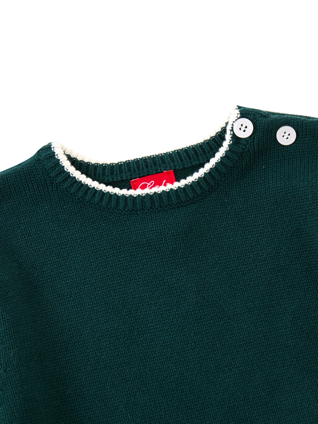 1 Pc. Emblem Shoulder Buttons Sweater - Forest Green