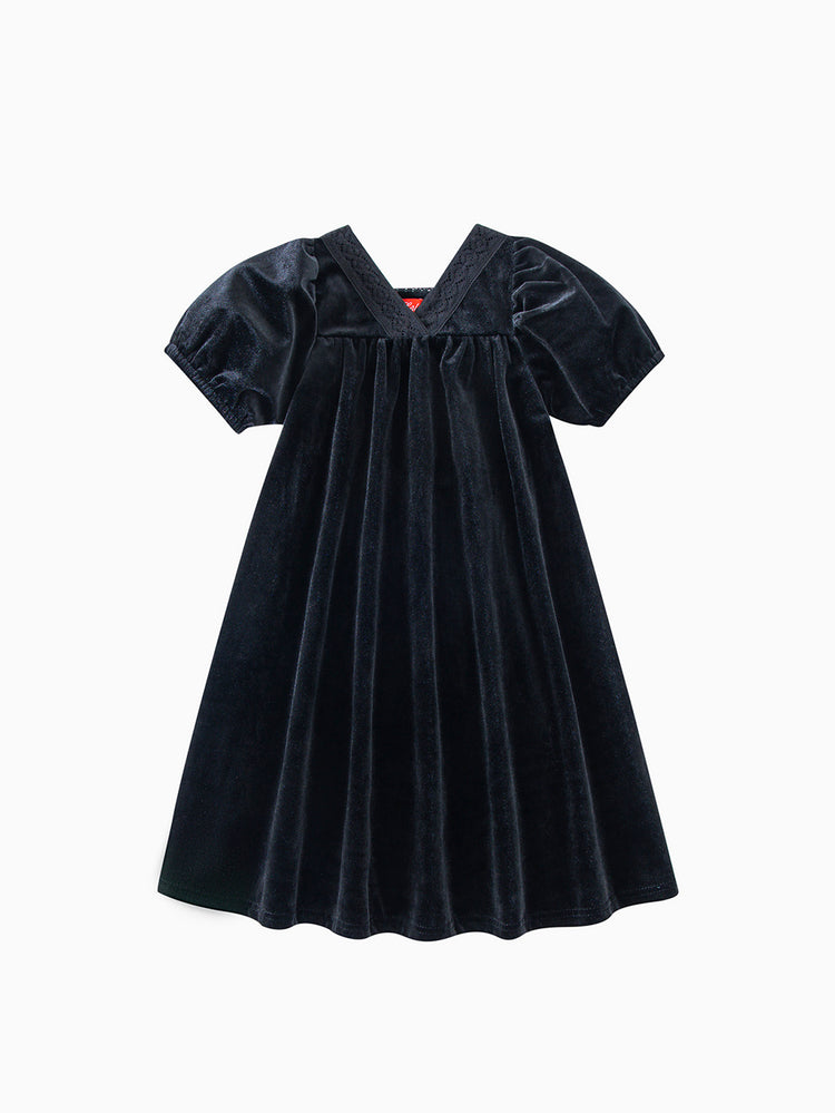 1 Pc. Lace Insert Dress - Black