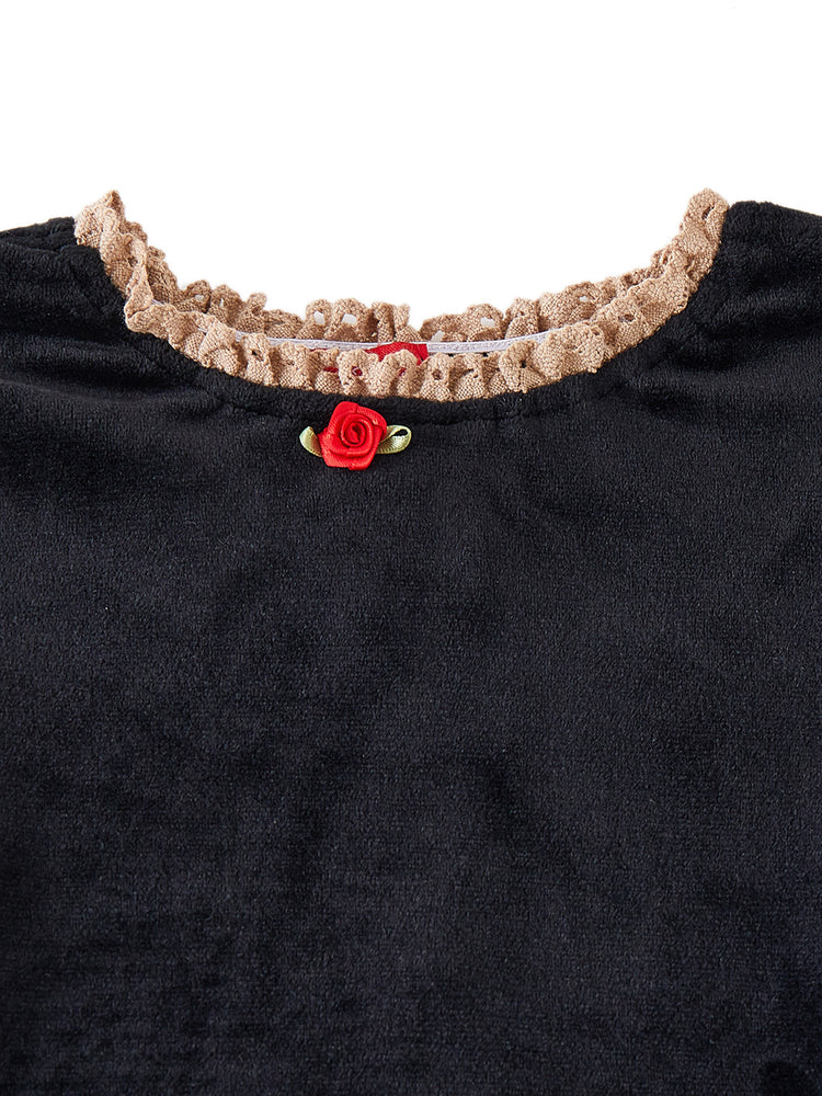 2 Pc. Lace Trim Pajamas - Black