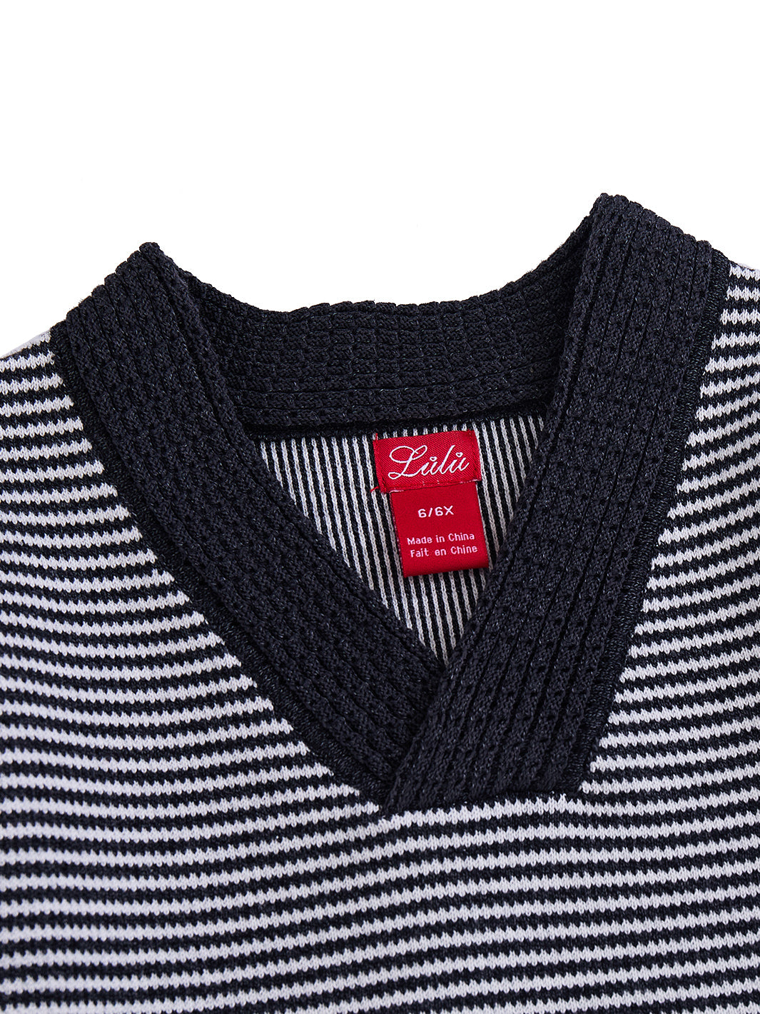 1 Pc. V-neck Striped Sweater - Charcoal Mélange