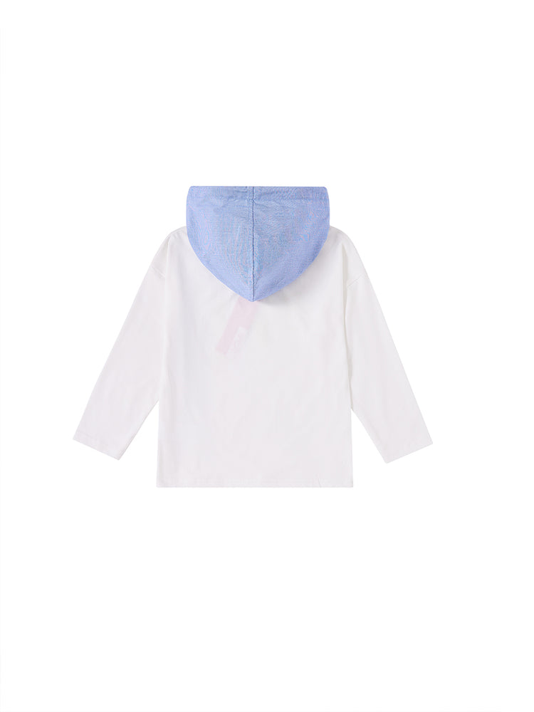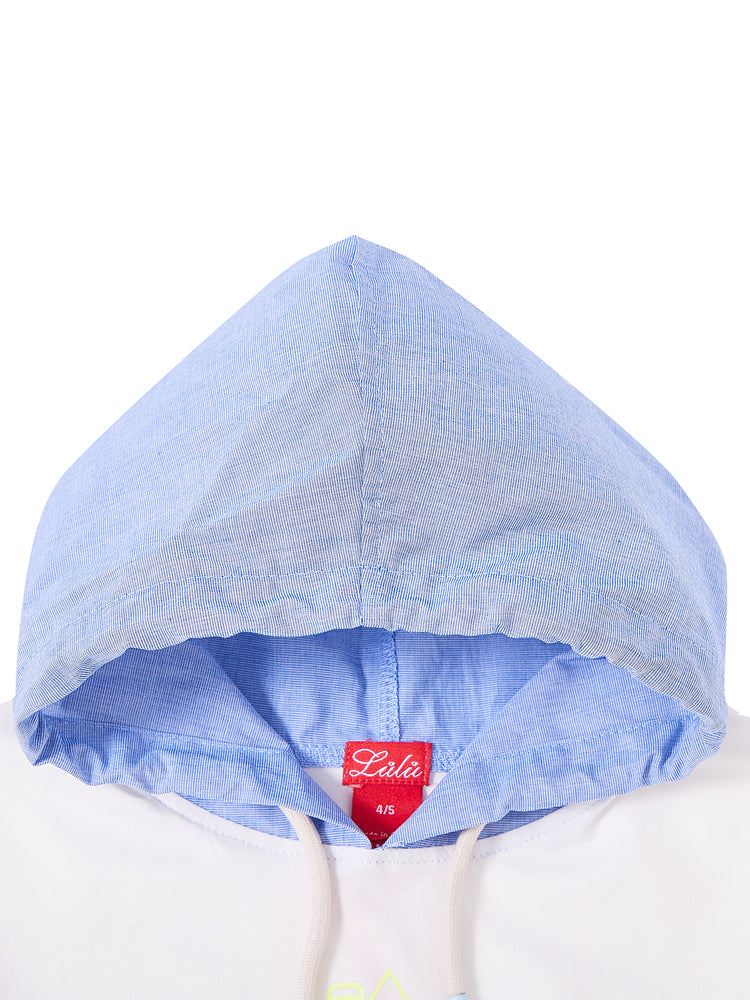 1 Pc. Big Print Hooded Top - White/Neon Yellow