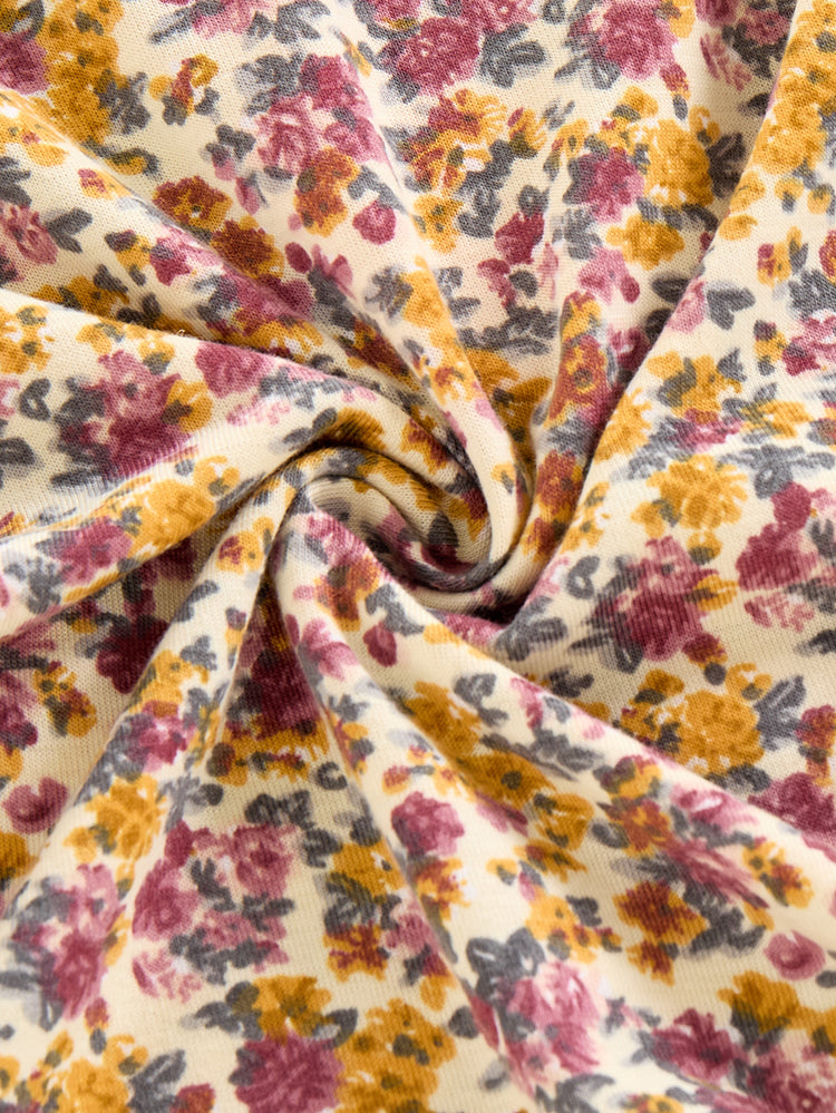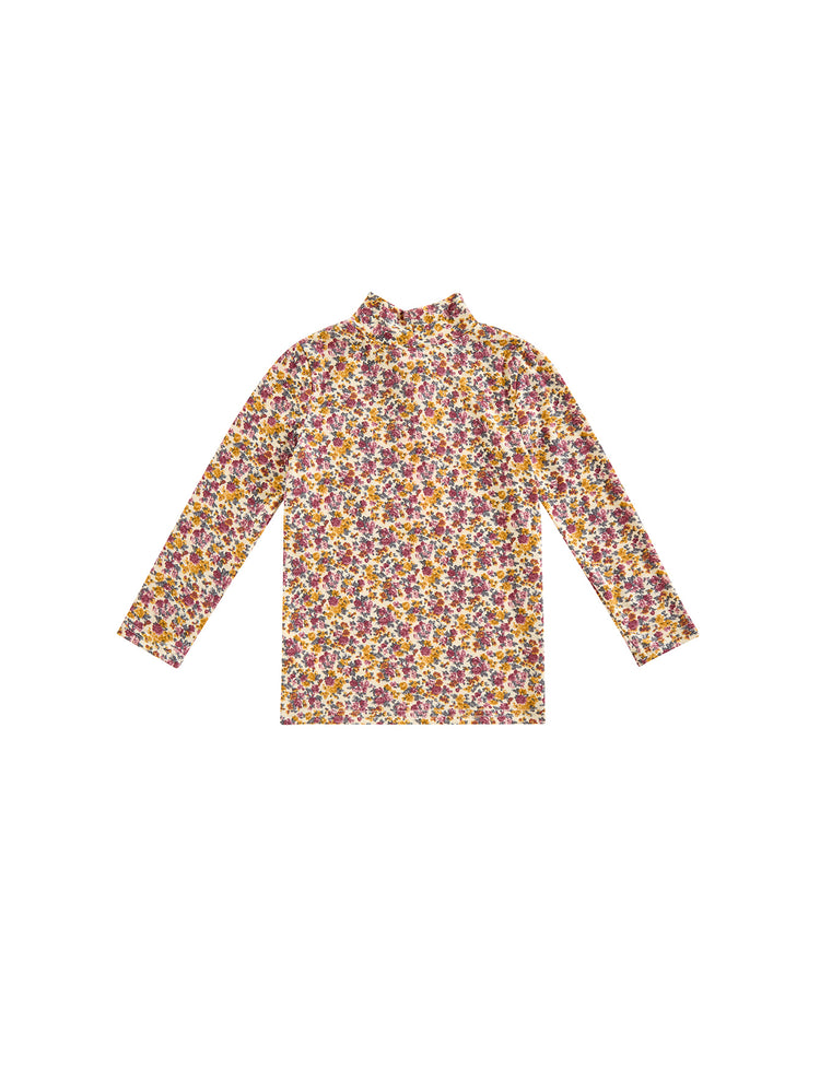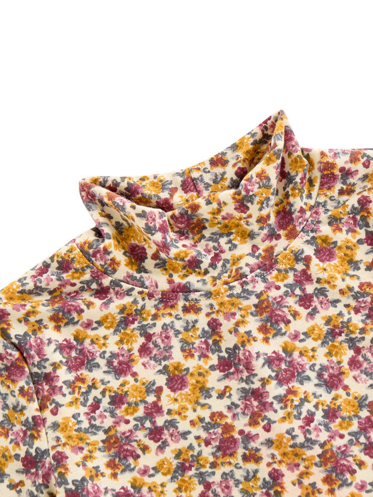 1 Pc. Floral Mock Neck T-shirt - Off white/Burgundy