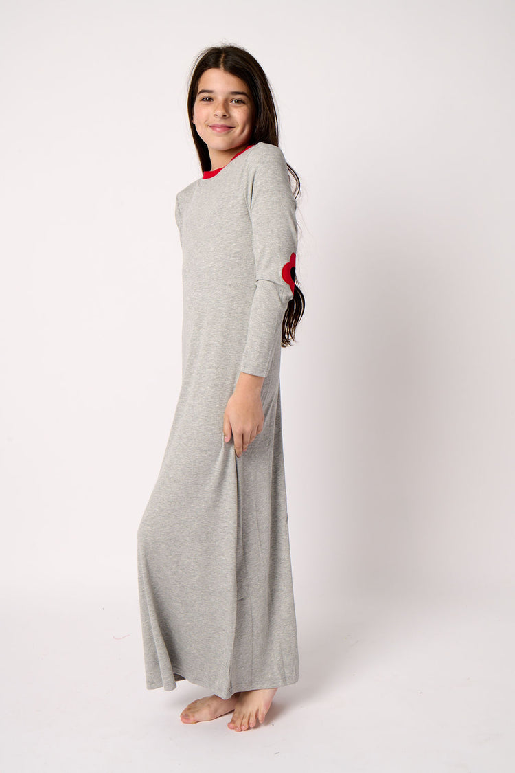 1 Pc. Flower Elbow Patch Nightgown - Black