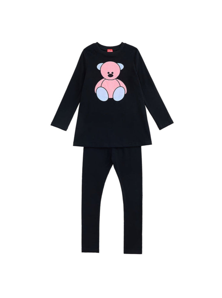 2 Pc. Tunic Gingham Bear Set - Black