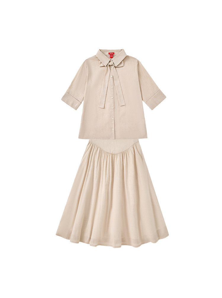 2 Pc. Girl Bow Set - Beige