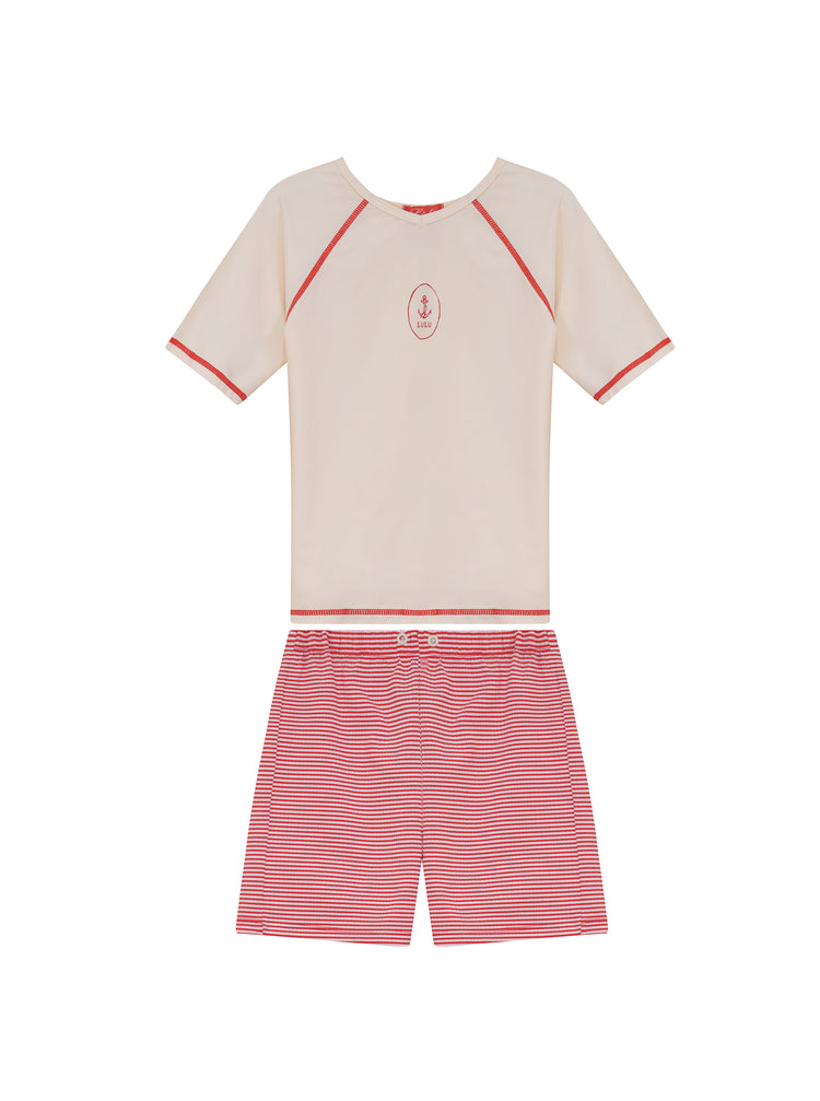 2 Pc. Boy Seersucker Stripe Swim Set - Red Stripe