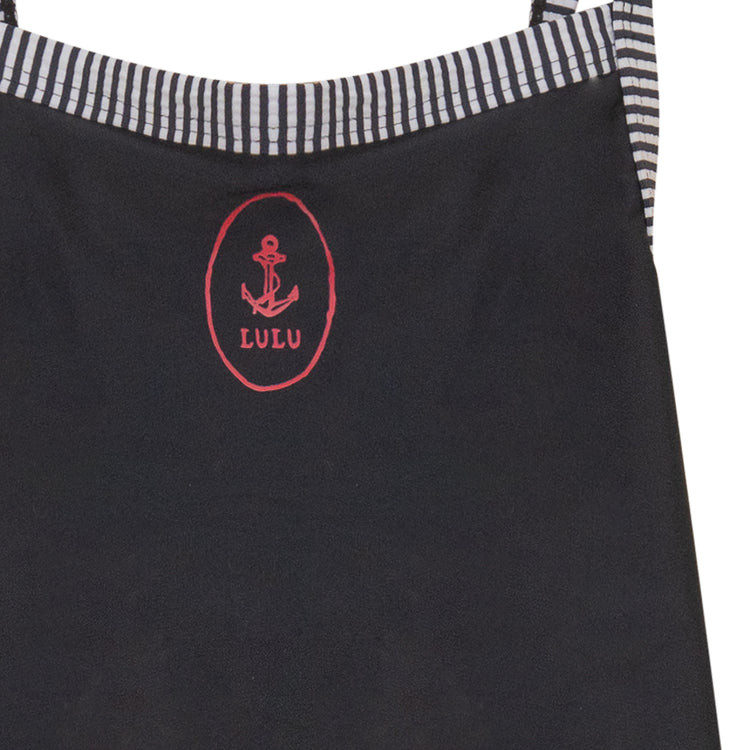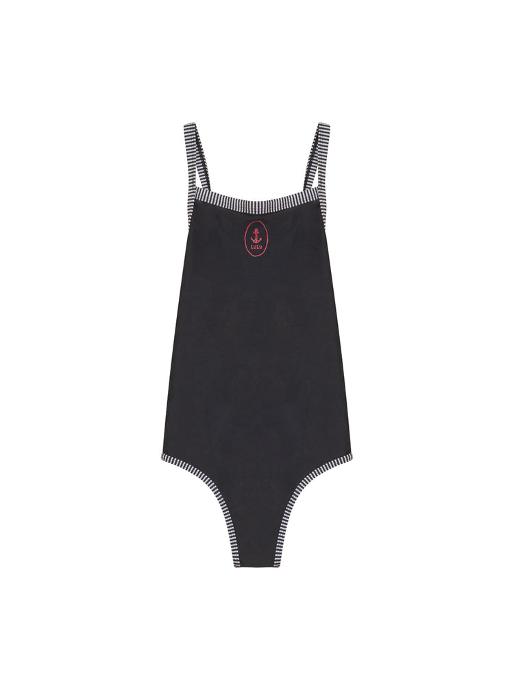 1 Pc. Seersucker Stripe Print Swimsuit - Black