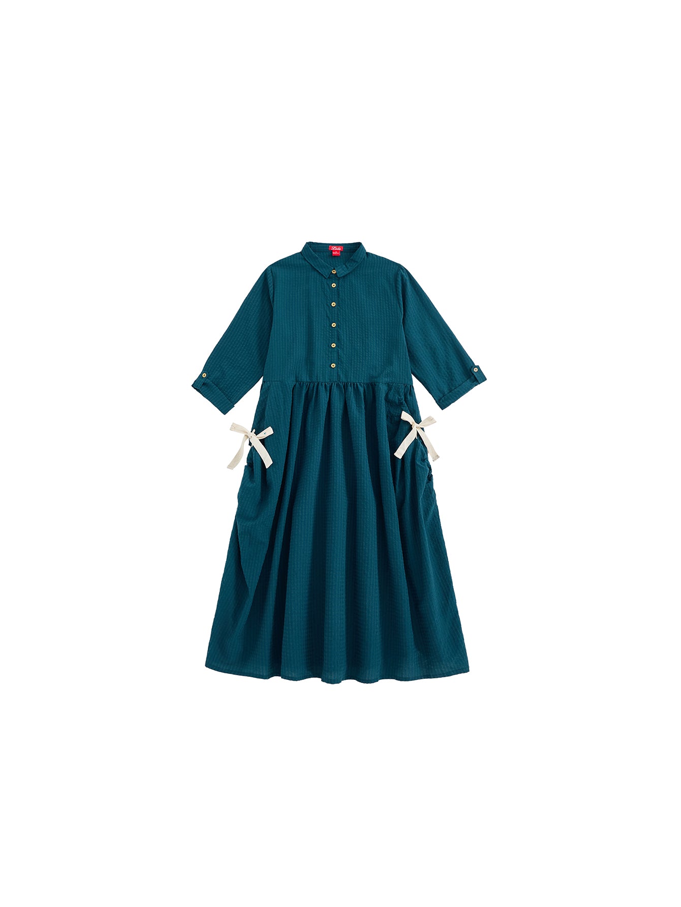 1 Pc. Side Pocket Bow Dress - Green Gingham