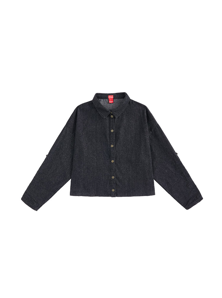 1 Pc. Denim Pocket Trim Shirt - Black Denim