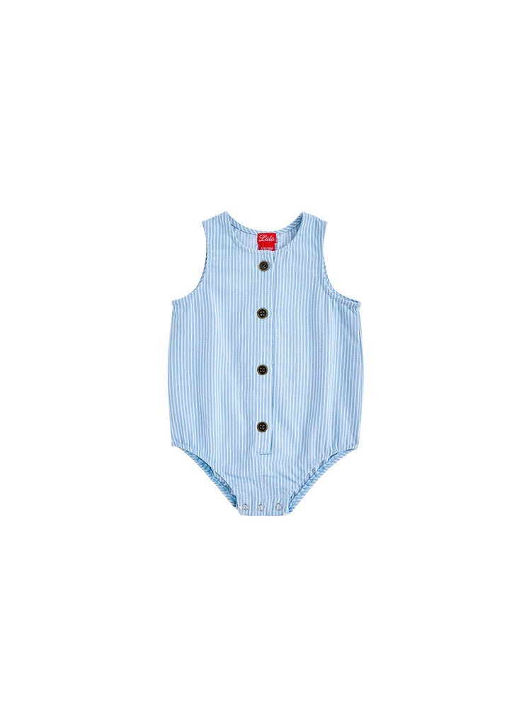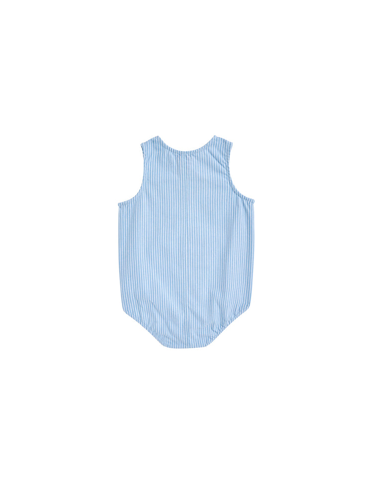 1 Pc. Denim Stripe Romper - Lt. Blue