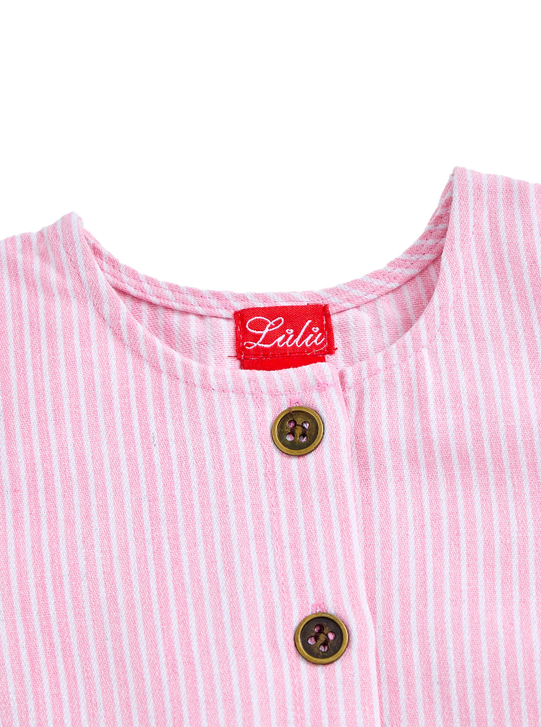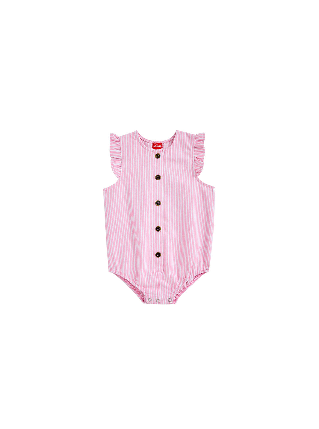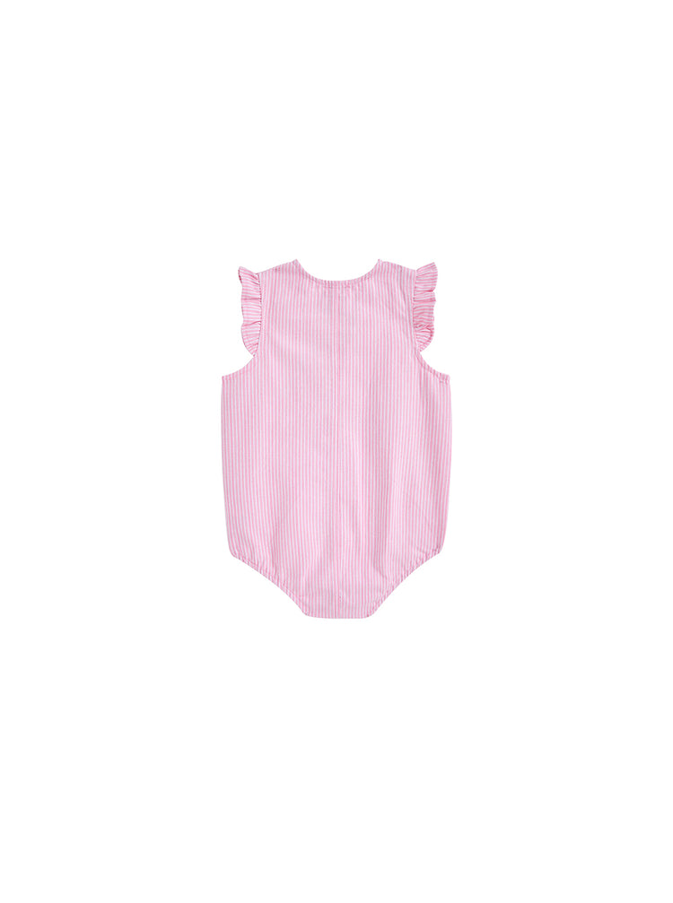 1 Pc. Denim Stripe Ruffle Romper - Lt. Pink