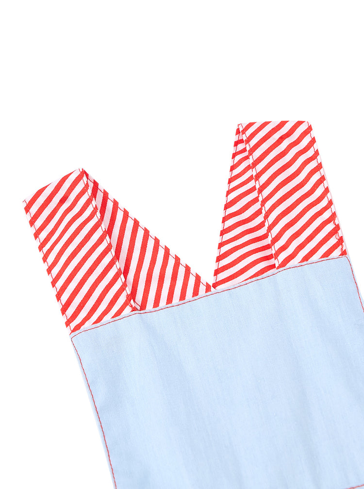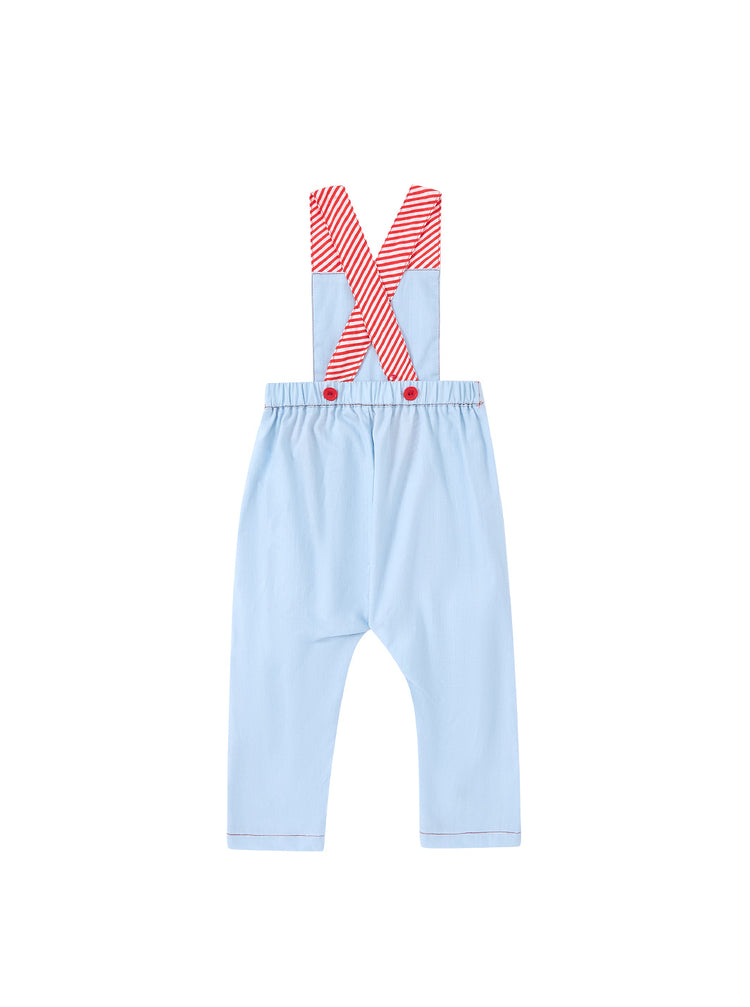 1 Pc. Denim Striped Straps Overall - Pale Blue