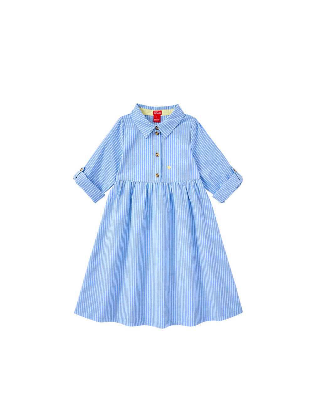 1 Pc. Striped Shirt Style Dress - Blue/Yellow