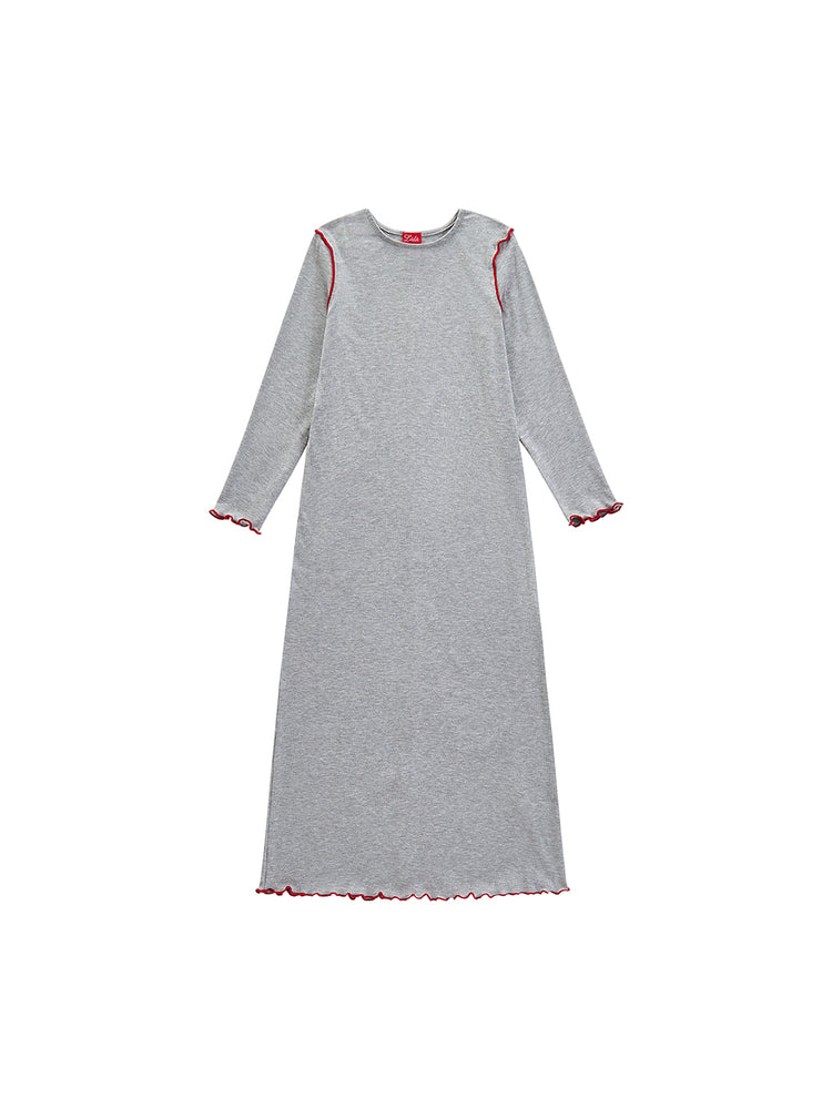 1 Pc. Bottom merrow edge Nightgown - Grey Mix