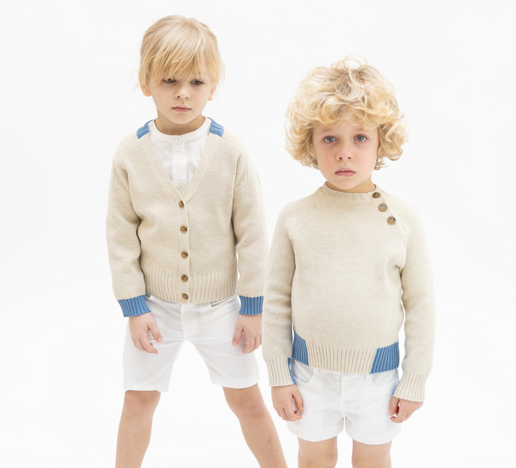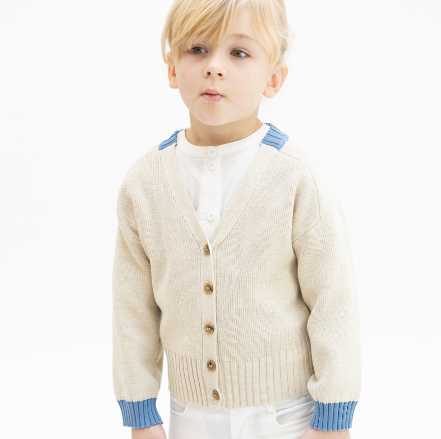 1 Pc. Cardigan Combo Sweater - Lt. Cream Mix