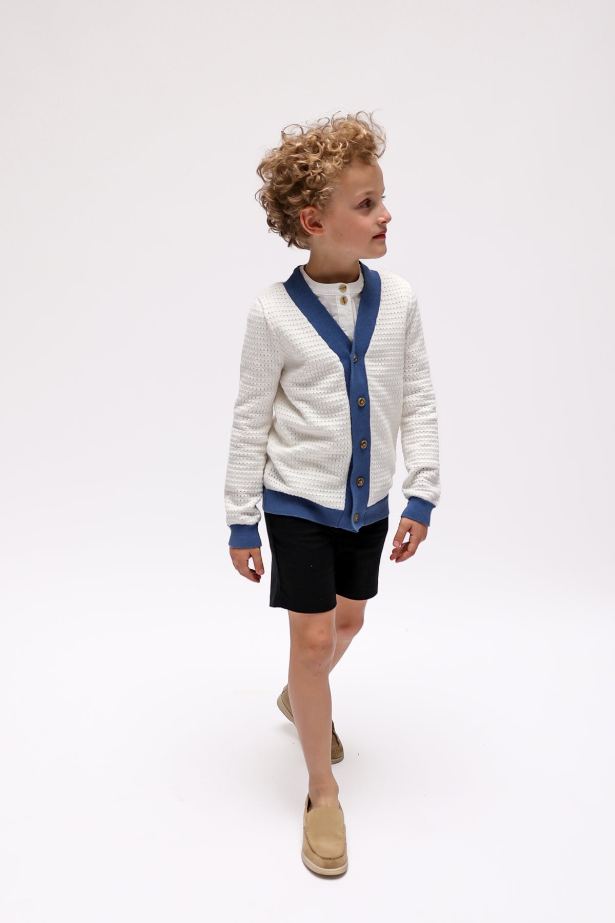1 Pc. Cardigan Eyelet Combo Sweater - Lt. Cream Mix