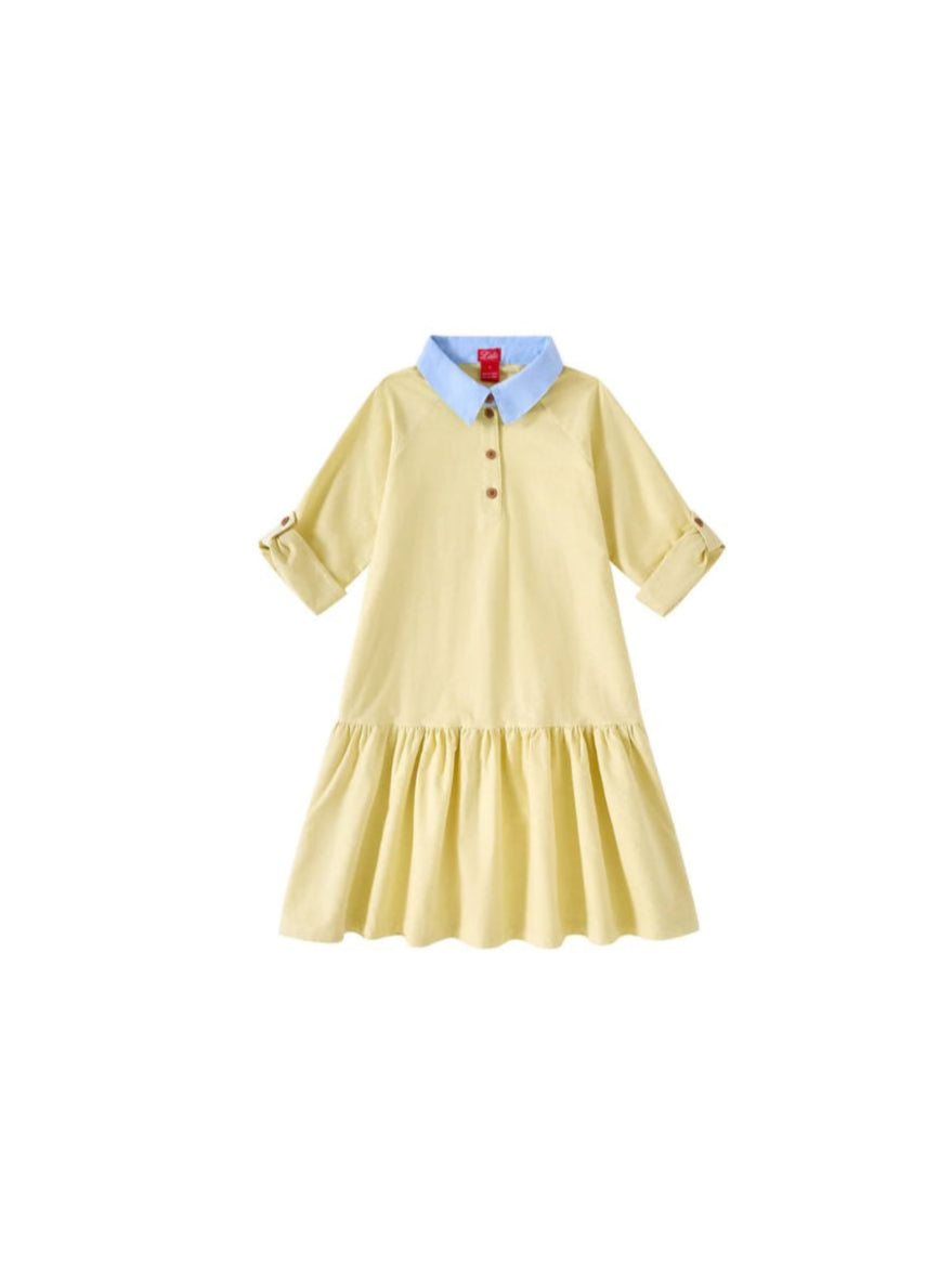 1 Pc. Combo Collar Dress - Yellow
