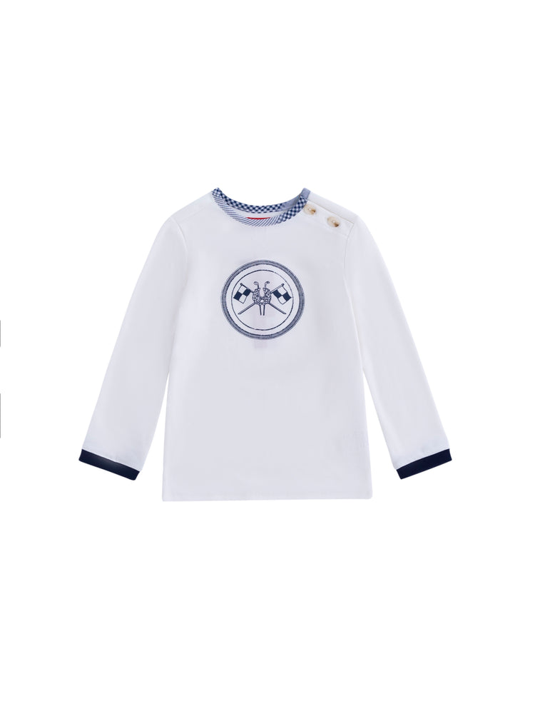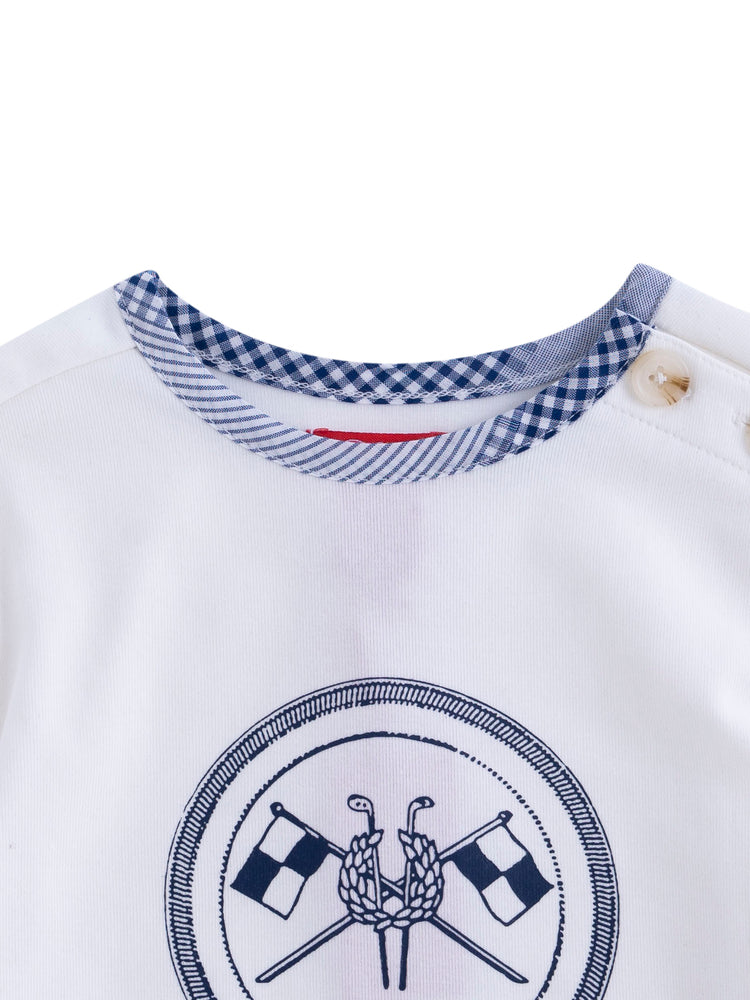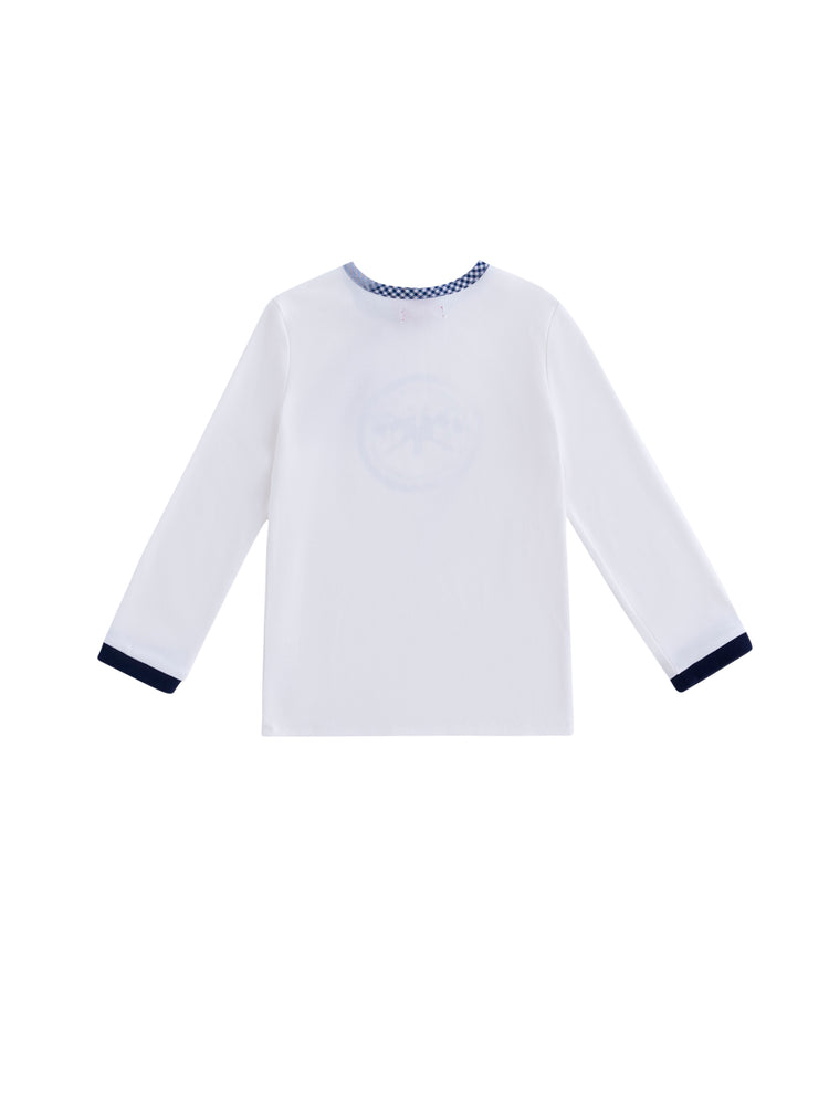 1 Pc. Combo Front Print Long T-shirt - White/Blue