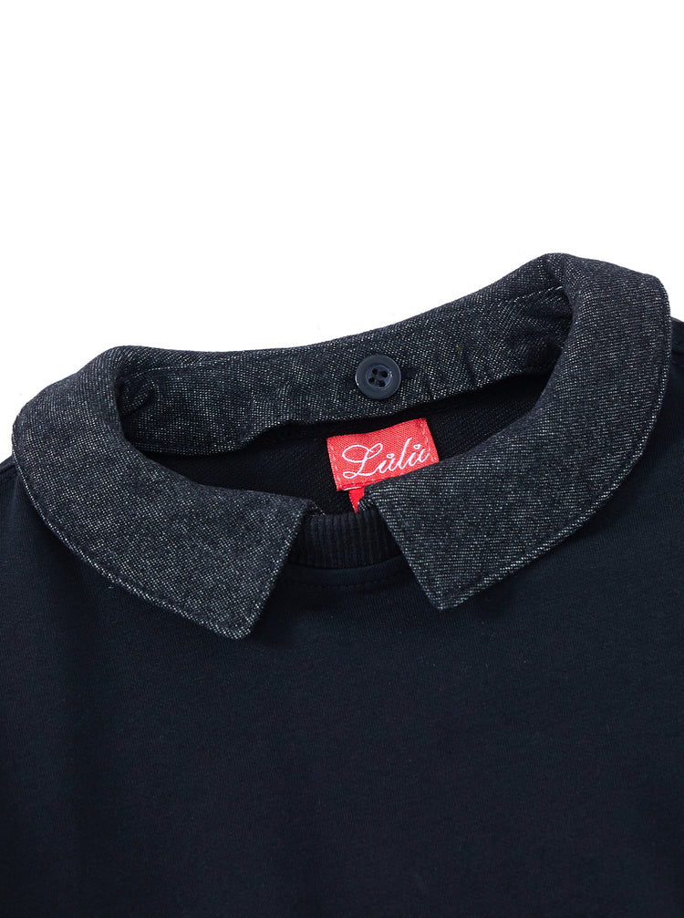 1 Pc. Detachable Denim Collar Top - Black Denim