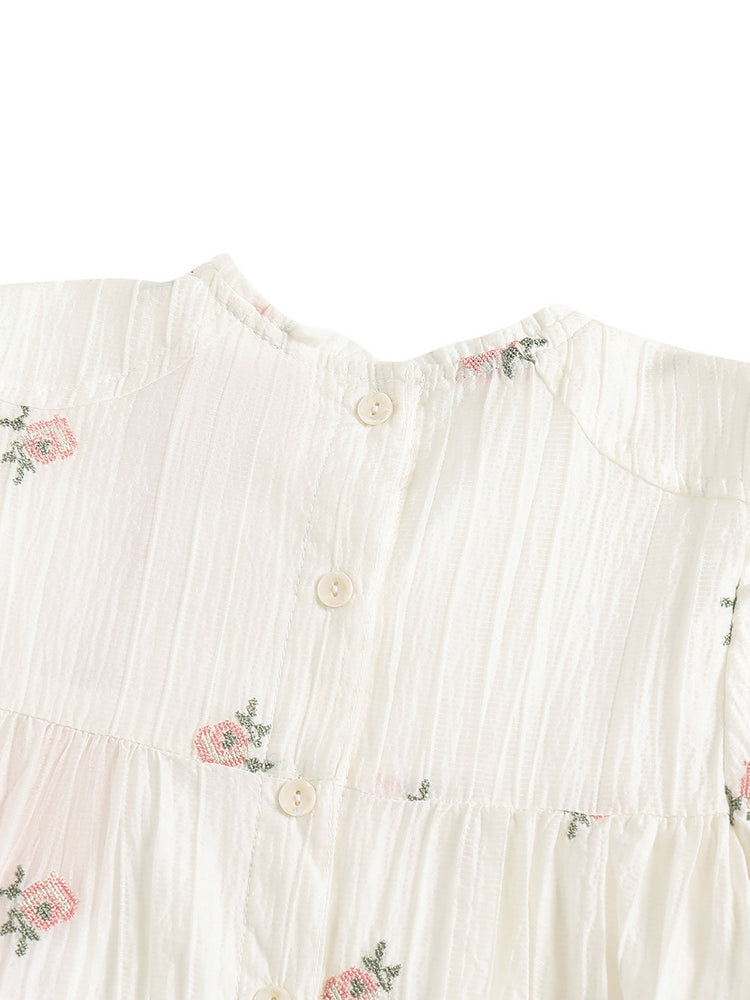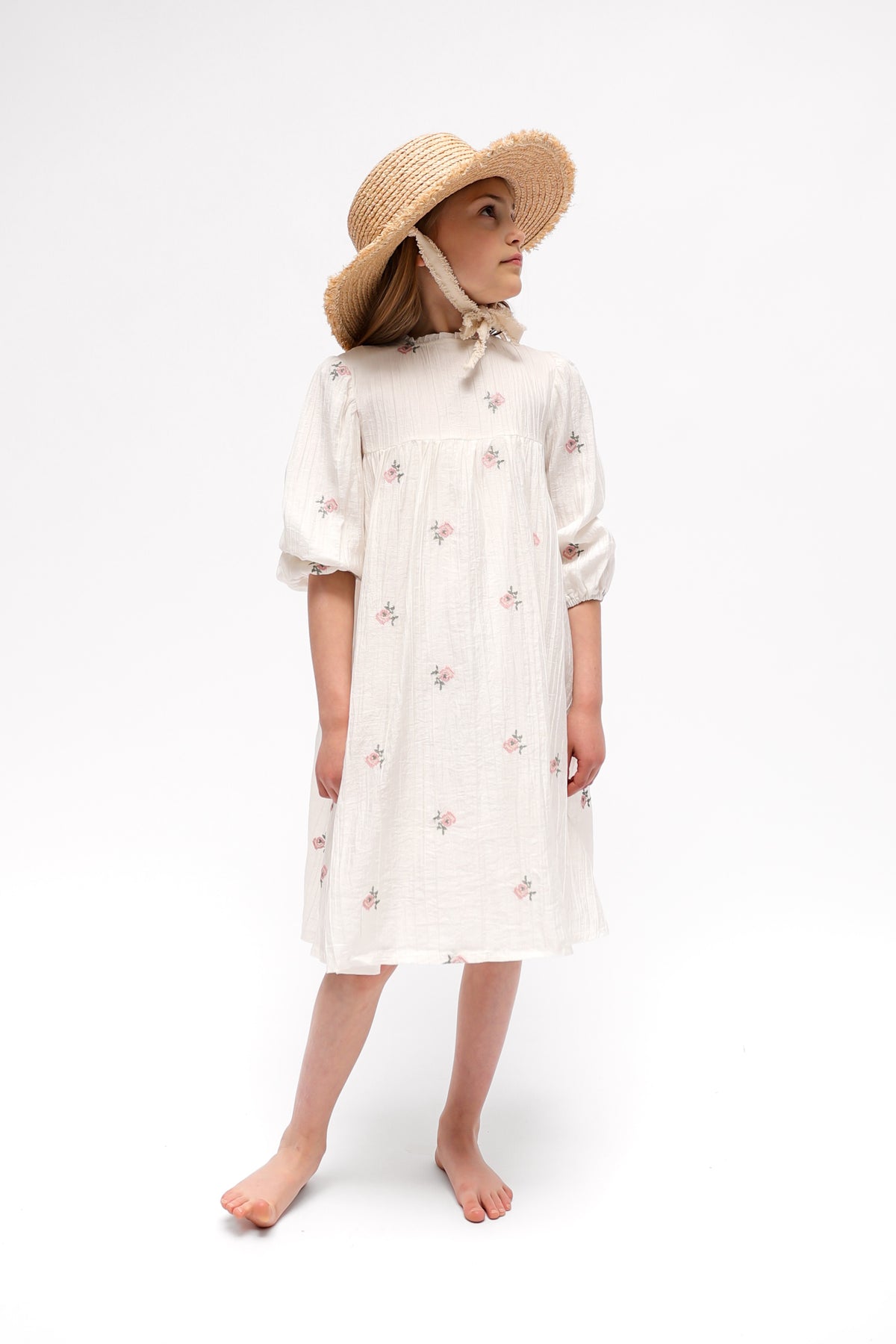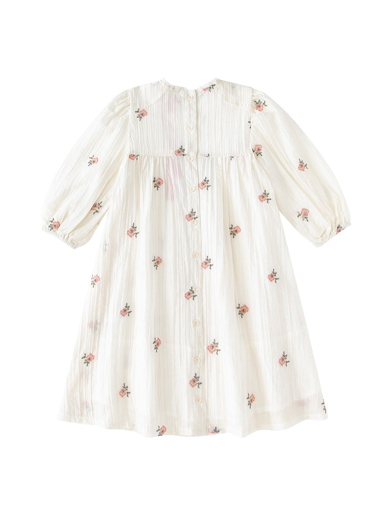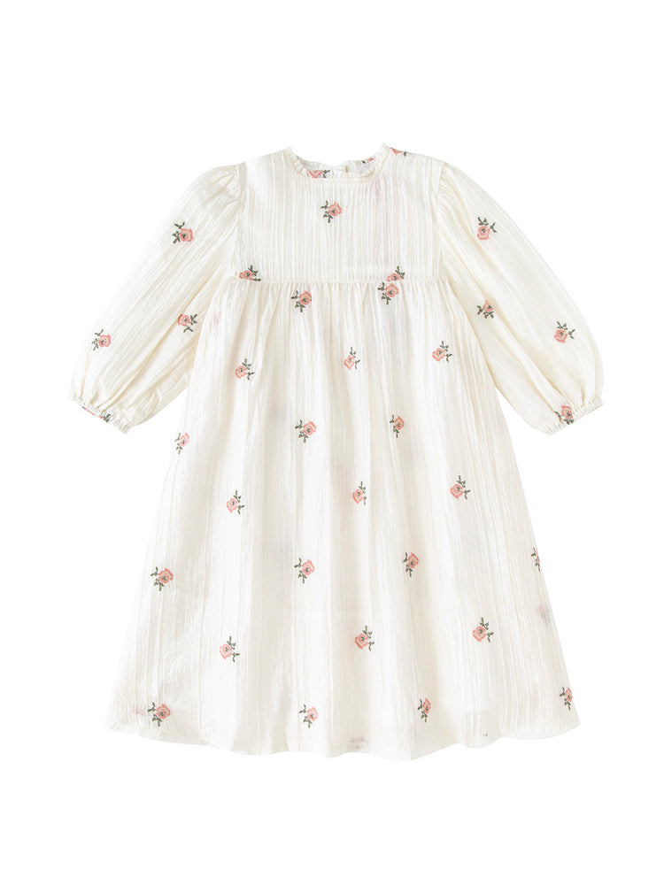 1 Pc. Embroidered Rose Dress - Off White/Lt. Pink
