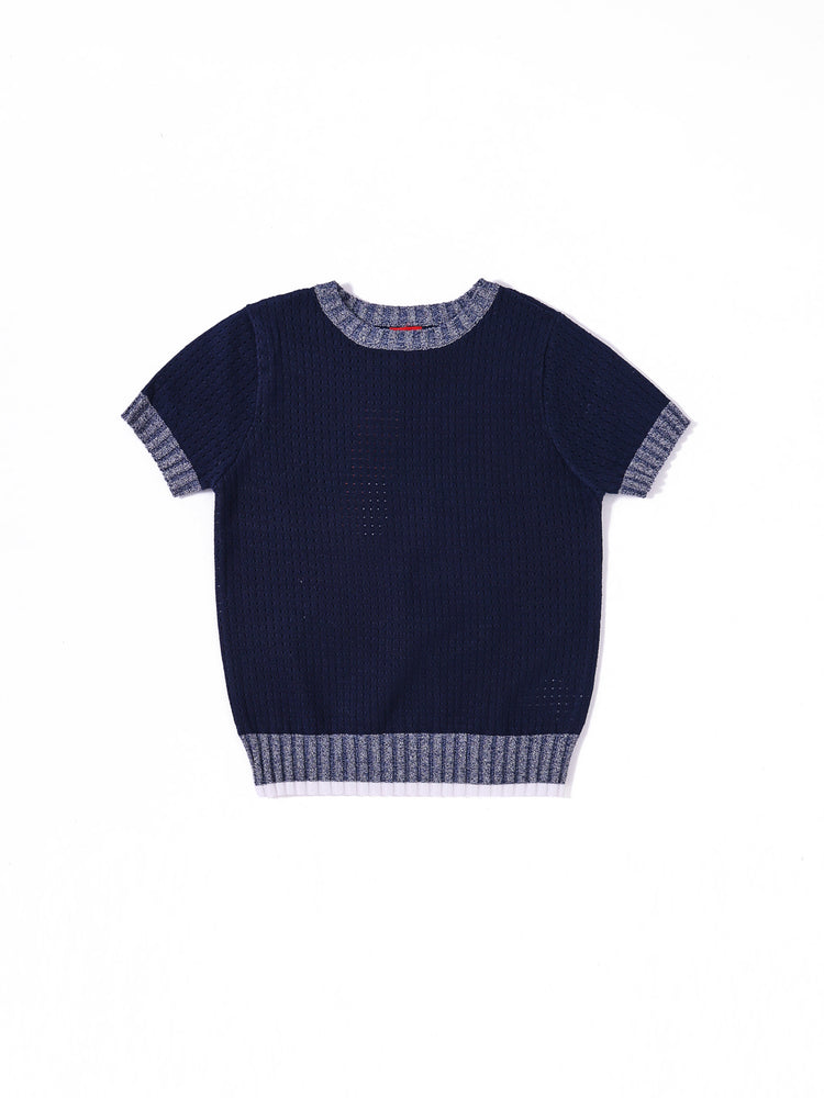 1 Pc. Eyelet Classic Short Sleeve Sweater - Deep Navy
