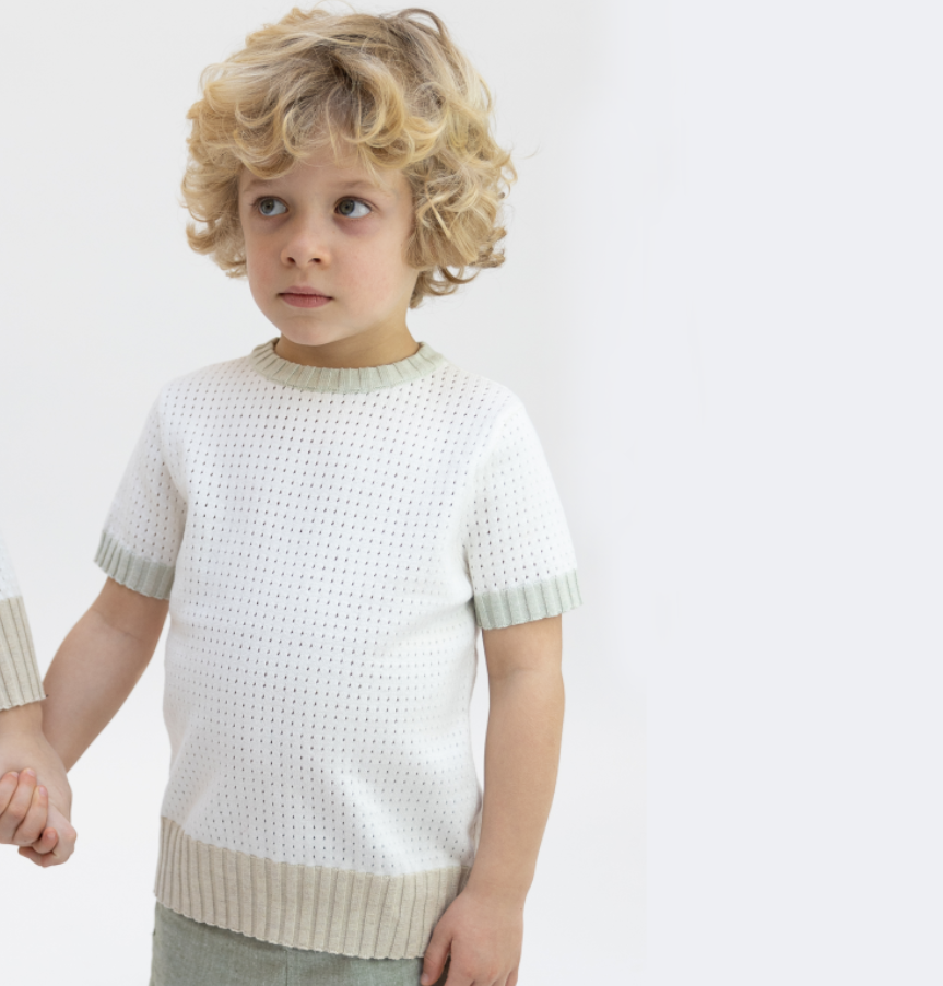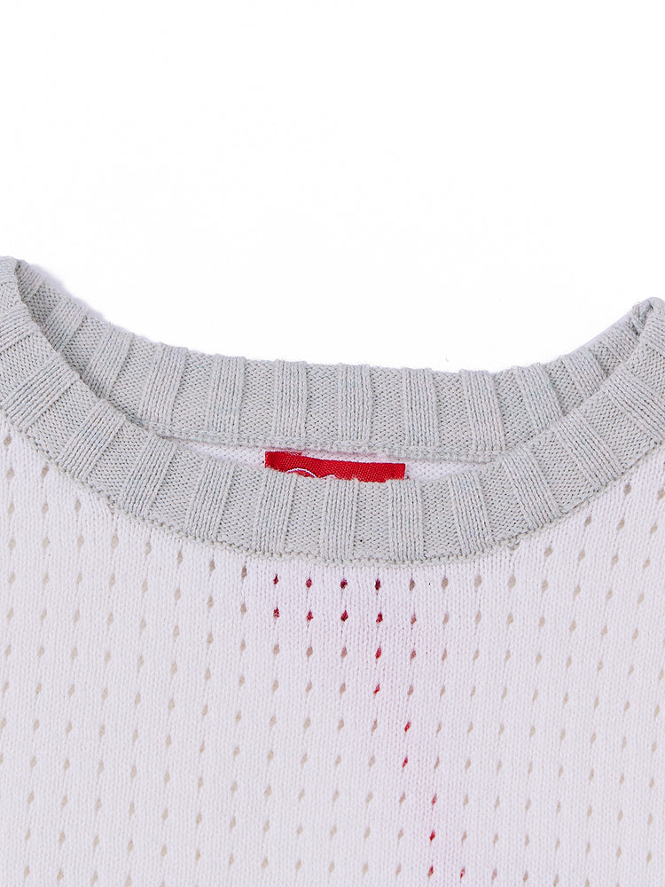 1 Pc. Eyelet Design Short Sleeve Sweater - Ivory White