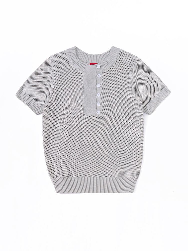 1 Pc. Front Button Short Sleeve Sweater - Lt. Mint Green Mix
