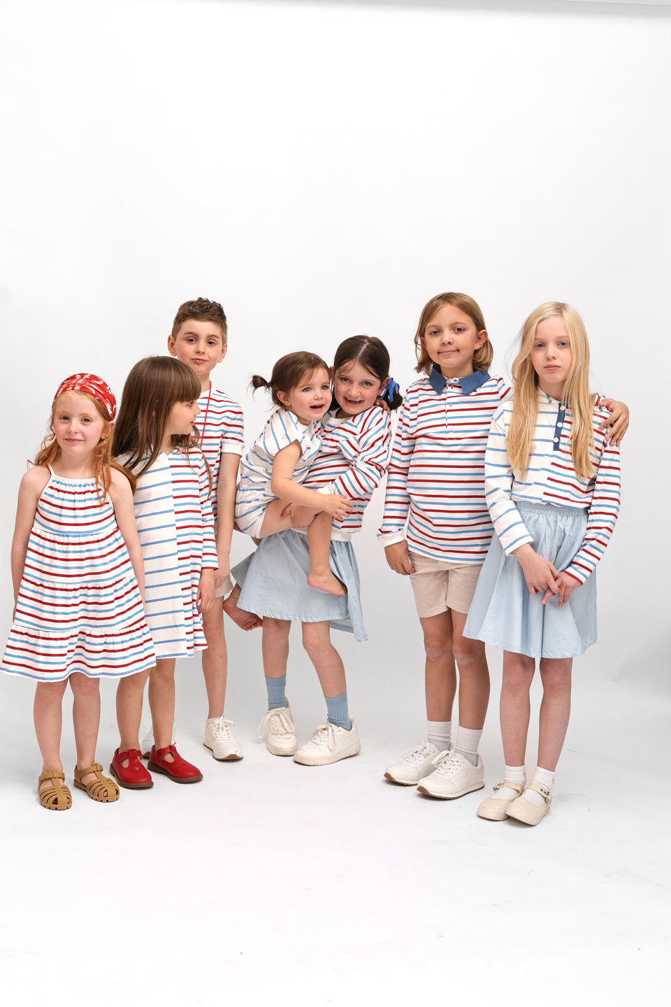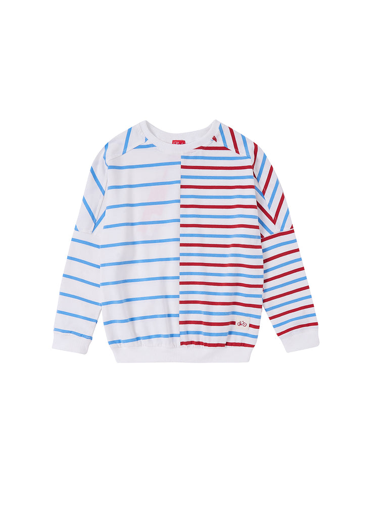 1 Pc. Half Striped Long Sleeve Top - White/Blue