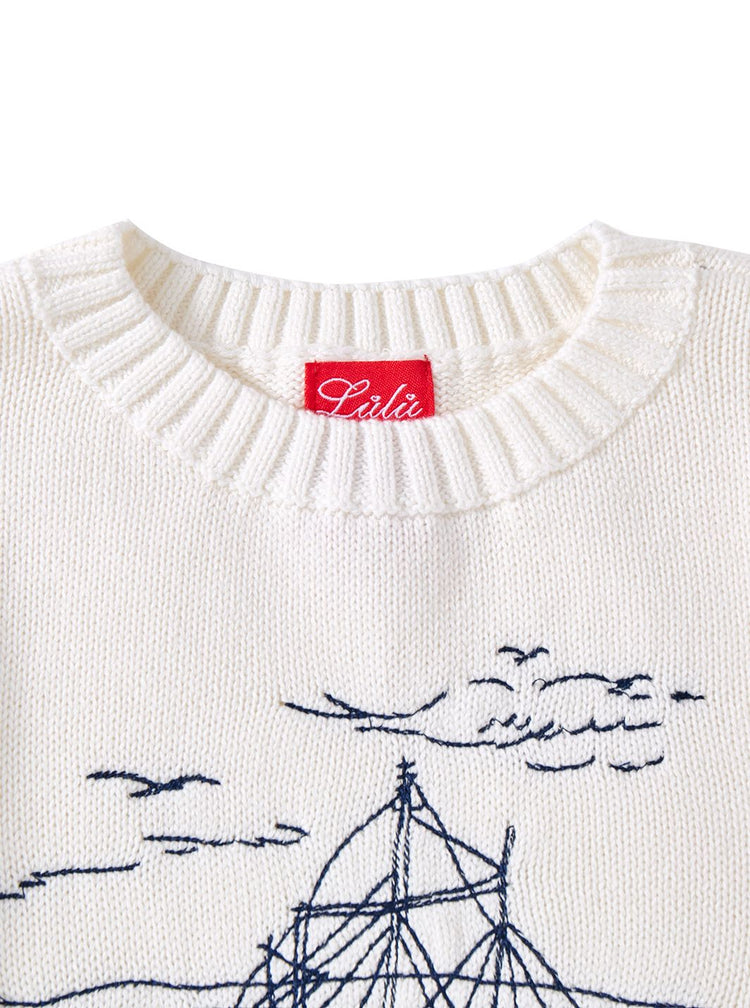 1 Pc. Big Nautical Emblem Sweater - Off White