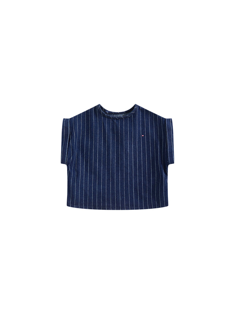 1 Pc. Denim Striped Crop Vest - Navy