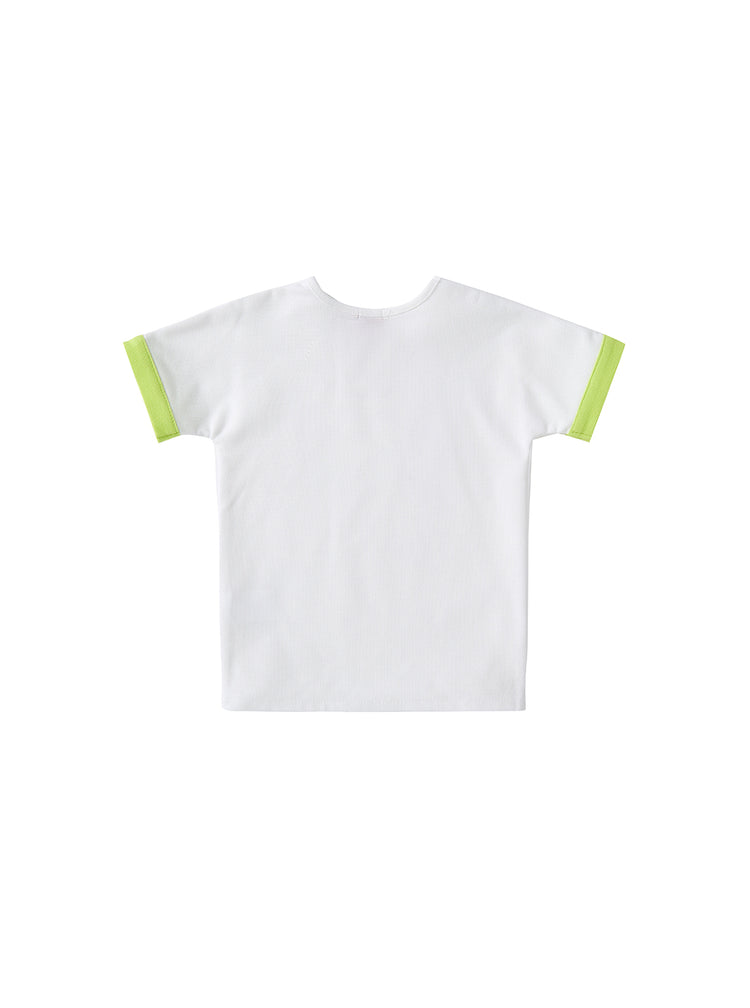 1 Pc. Waffle Short T-shirt - White/Neon Green
