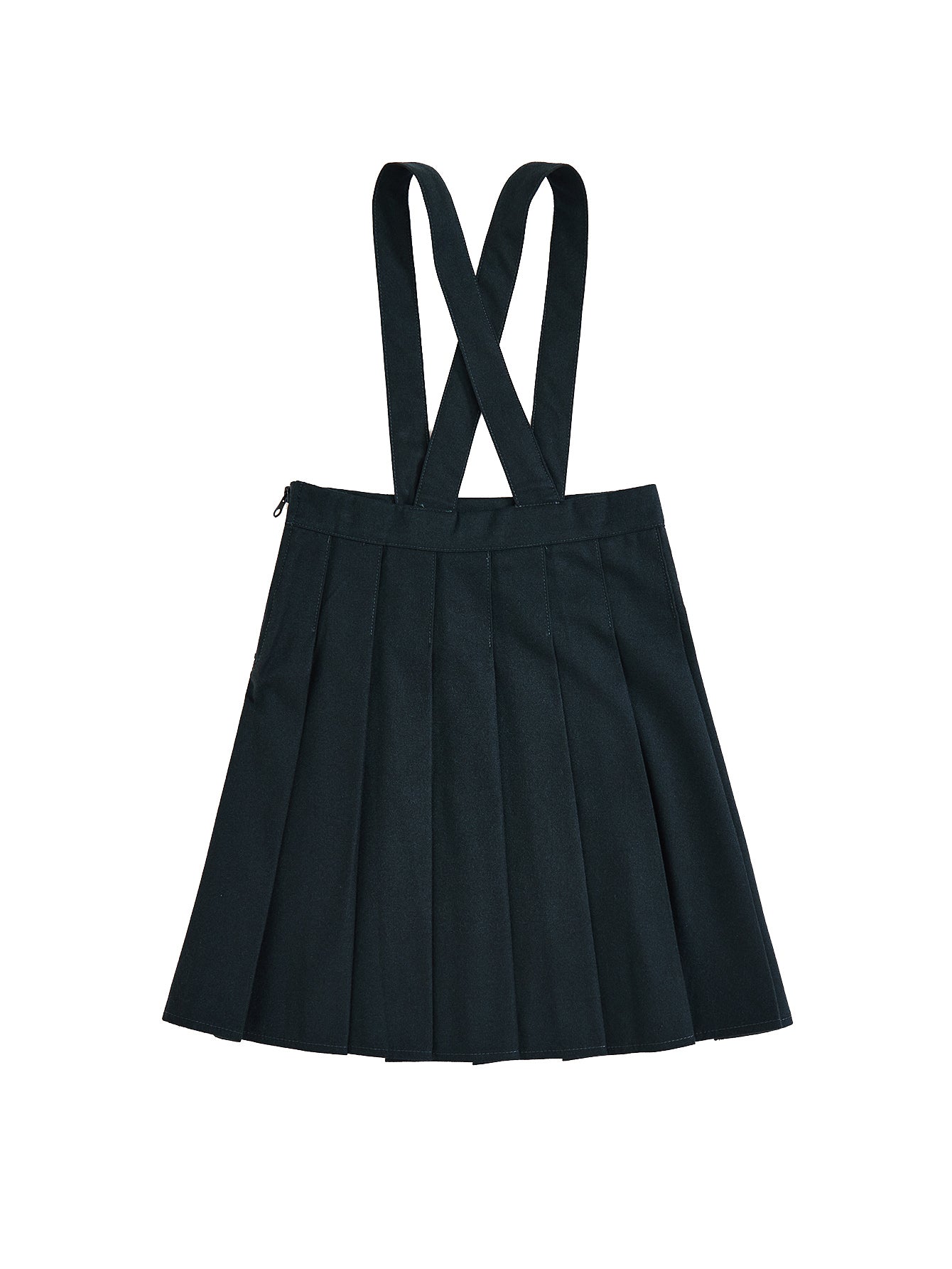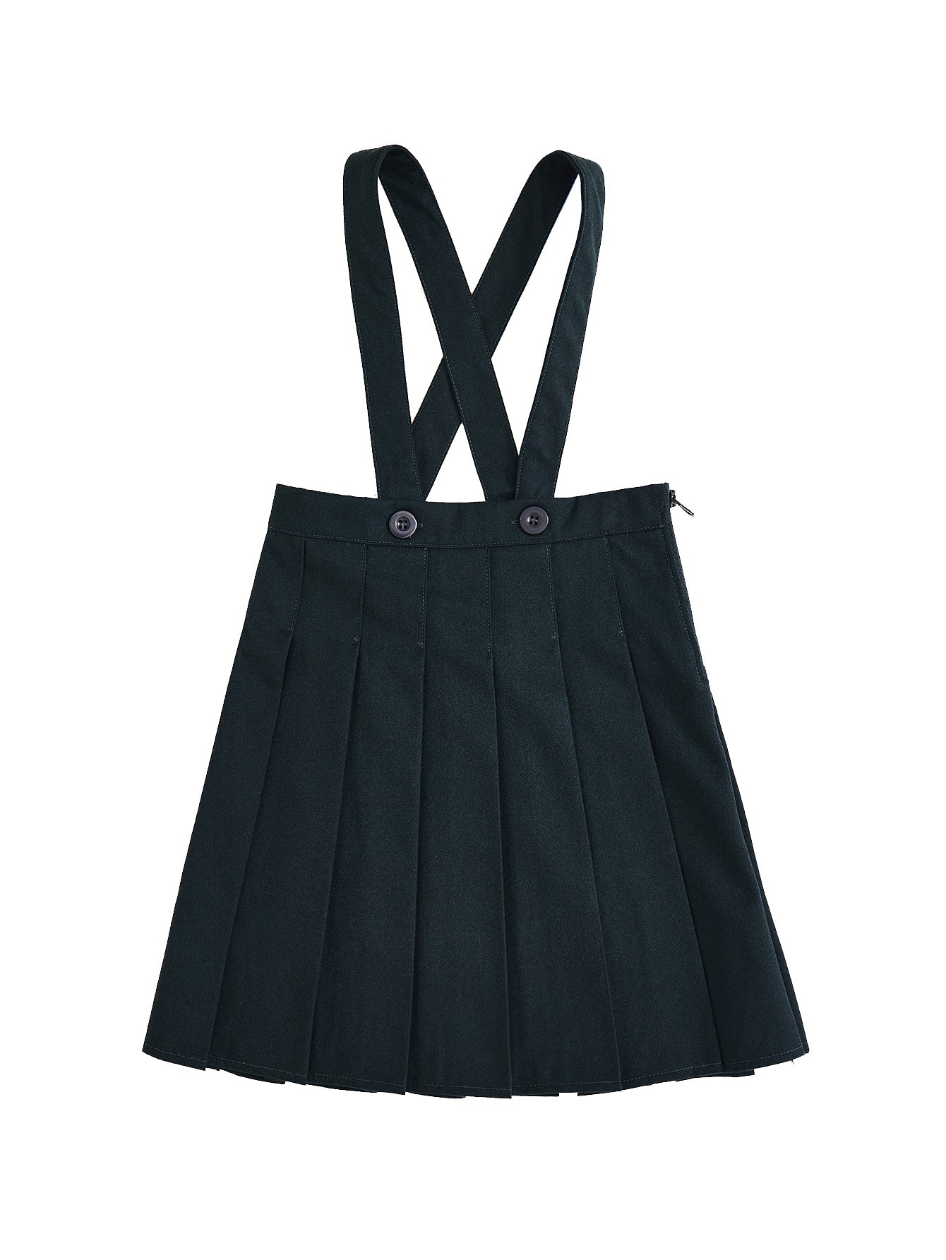 1 Pc. Brushed Pleated Suspenders Skirt - Green