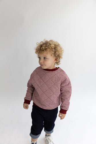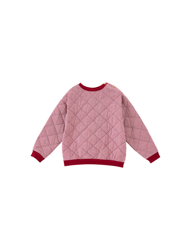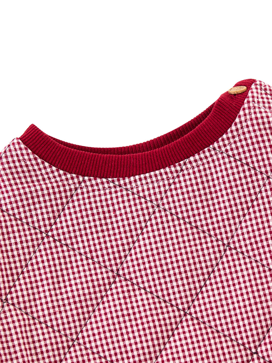 1 Pc. Gingham Quilted Top - Burgundy/White