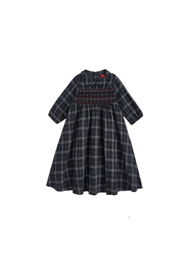 1 Pc. Grey Plaid Smocking Dress - Grey Plaid